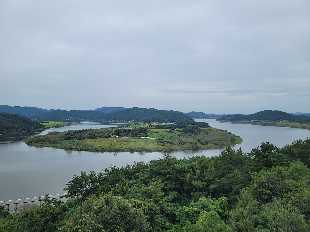 느러지 전망대에 오르니, 한반도 지형을 닮은 풍광이 한눈에 들어온다. 영산강 물길이 하구 쪽 나주평야를 지나며 유속이 느려지면서 강물이 휘돌아가며 생긴 지형이라 한다. ‘느러지’라는 말도 '물길이 느리게 돌아가는 곳'이라는 뜻이다. 우리가 잘 알고 있는 강원도 영월의 동강과 낙동강 하회마을도 이런 현상으로 이루어진 곳이라 한다. 알고 보니 그 형상이 많이 닮았다.
