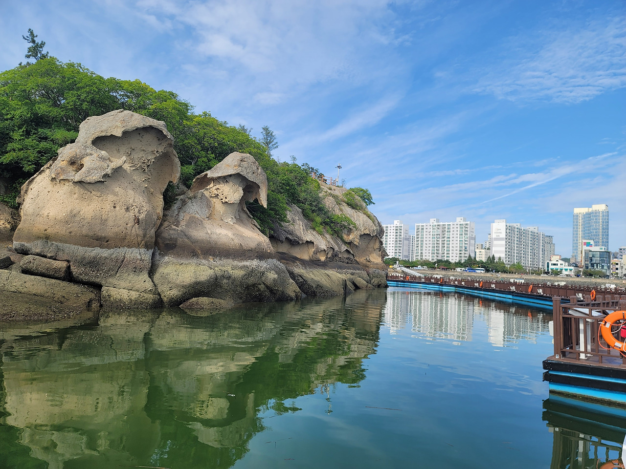 10여 km를 더 달렸다. 영산강 하굿둑이 가까워지면서 강인지 바다인지 모를 드넓은 물길이 이어지고, 멀리 도심의 아파트가 보인다. 마지막 영산강 하굿둑 인증을 마치고, 목포역을 향해 달린다. 공도를 타고 가는 길목에서 목포의 명소인 갓바위를 둘러보는 여유도 생겼다.