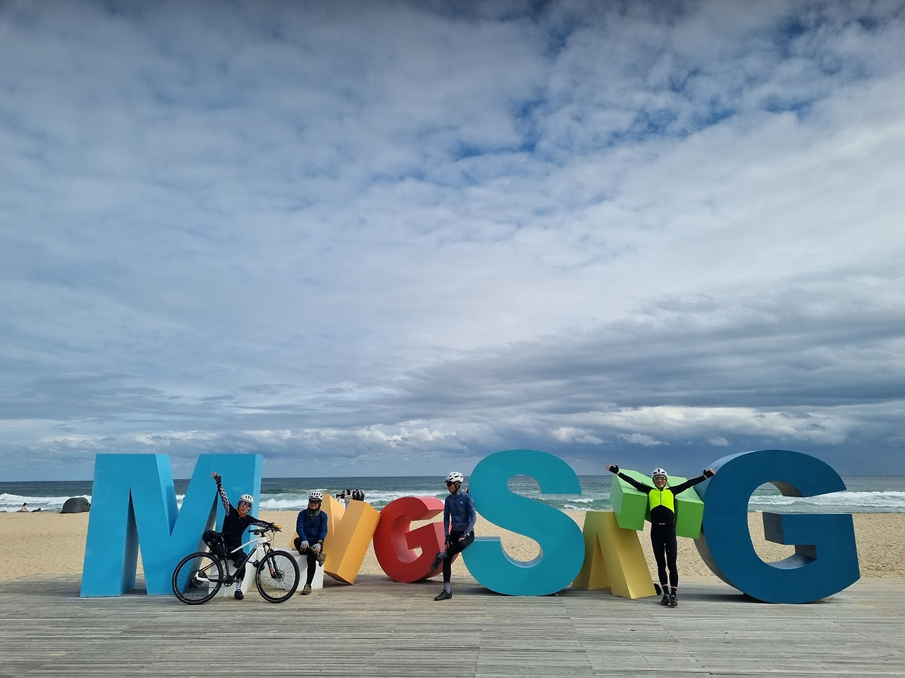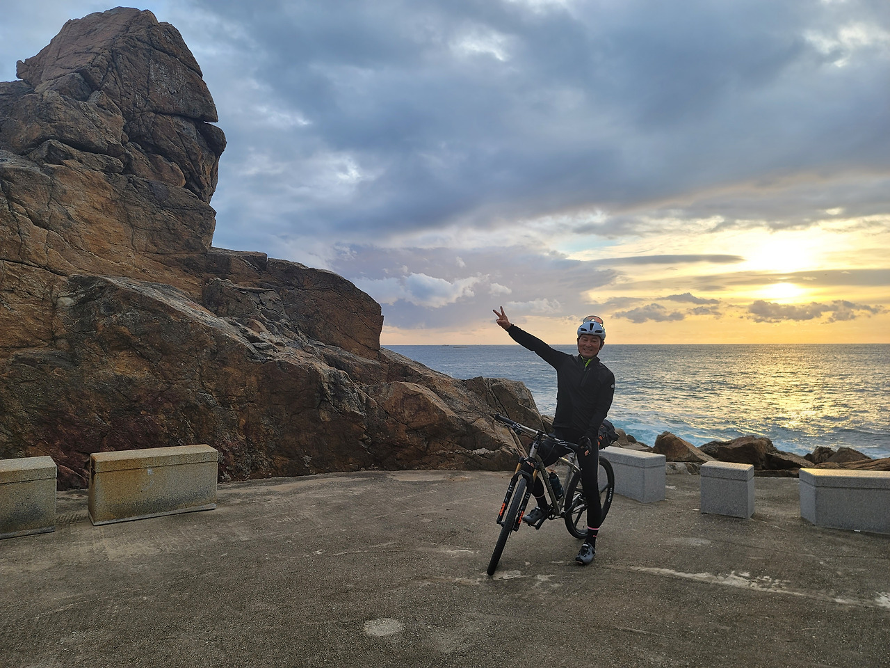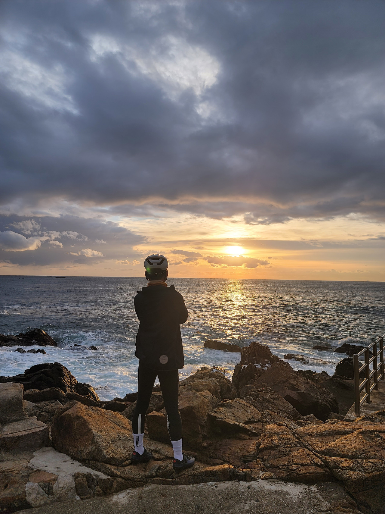 정동진으로 가는 길은 험난했다. 길을 잘못 들어 해변도로를 놓치는 바람에 도심을 따라 도로를 달려야 하는 코스가 많아 더욱 힘든 여정이었다. 다시 길을 찾았지만, 정동진 고개를 넘어가는 길은 마지막 한 방울까지 고통스러운 힘을 짜내야 했다. 끌바를 하고 쉬어가며 고개를 넘으니, 드디어 푸른 동해바다가 눈이 시리게 펼쳐진다. 여러 번 이곳을 찾았지만, 두 바퀴로 정동진에 왔다는 사실이 행복하다.