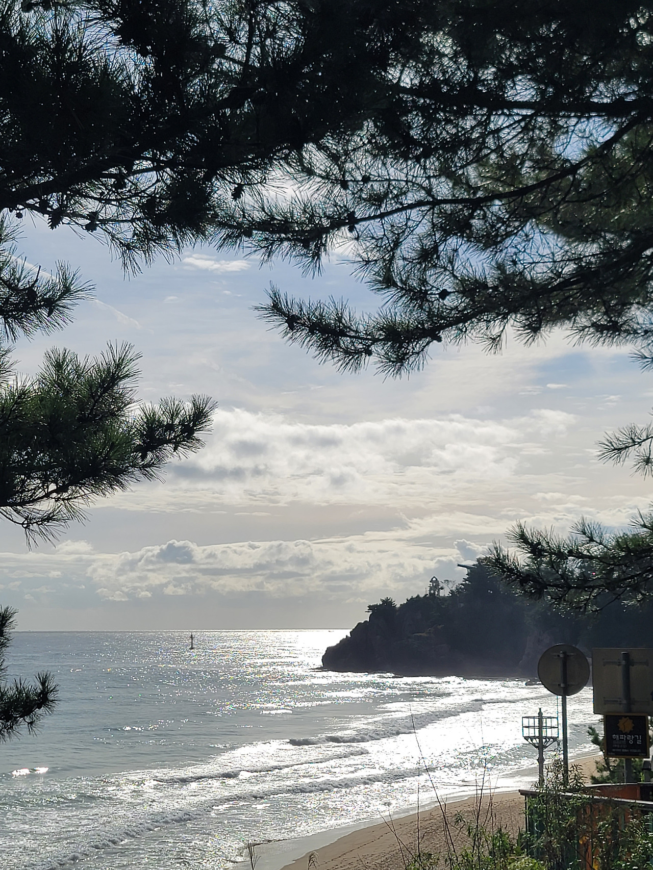 숙소 인근 식당에서 해물탕으로 아침을 해결하고 8시에 출발했다. 다시 바다를 끼고 달린다. 세상 근심 다 사라지게 하는 바다의 아침이 끝없이 펼쳐진다. 동해 푸른 바다 출렁이는 파도가 가슴을 떨리게 한다. 파도 따라 벅찬 가슴이 일렁거린다. 하늘 푸르고 잔물결 일렁이는 수면 위에서 부서지는 햇빛이 찬란하다. 시원한 아침 공기를 깊이 들이마시며 달린다, 머리부터 발끝까지 감도는 청량한 기운이 온몸을 감싼다.