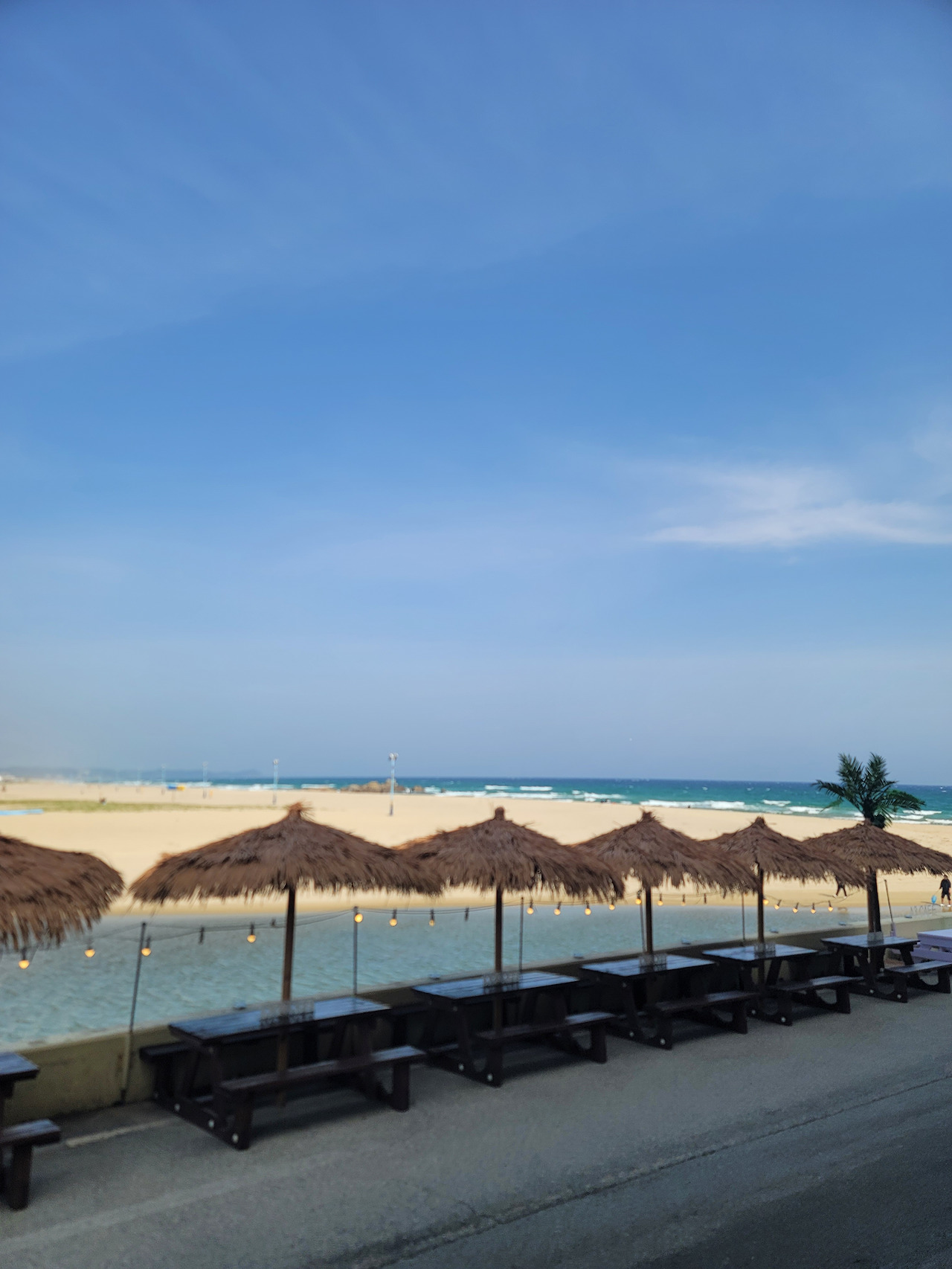4월도 마지막을 치닫고 있고, 봄이 완연한 계절. 하늘은 더 이상 맑을 수 없을 정도로 구름 한 점 없지만, 어제와는 전혀 다른 날씨다. 아침부터 날이 쌀쌀하고 바람조차 거칠다. 대포항에서 설악항을 거쳐 동호해변 인증센터까지 달렸다. 장갑을 꼈는데도 손가락이 시리다. 하조대 해변 넓은 백사장 끝자락에 커피숍이 보인다. 잠시 쉬어가기로 했다. 보통 라이딩 도중 커피는 아이스 아메리카노 이외에는 선택의 여지가 없었는데, 오늘은 따뜻한 아메리카노를 시켰다.