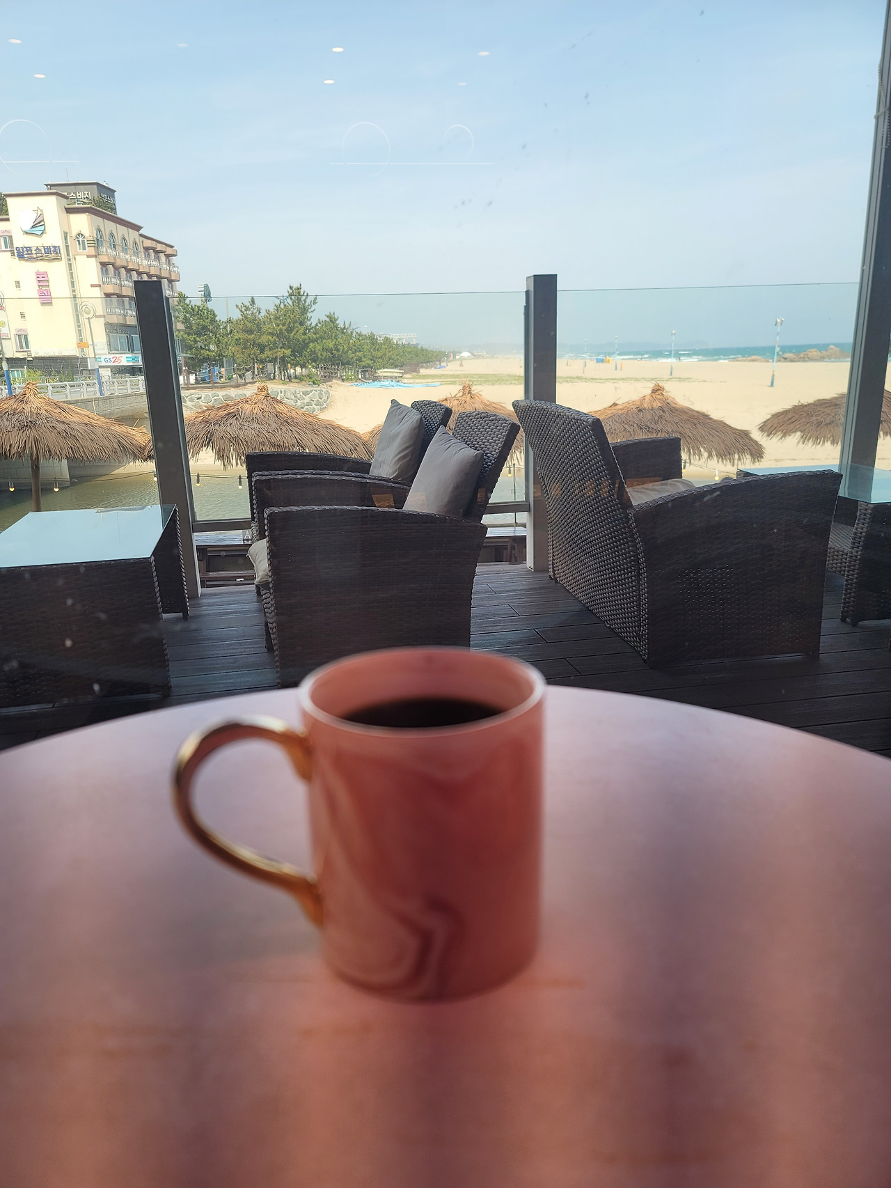 파도의 고독을 한 스푼 담아 커피 한 모금 마신다. 행복 한모금을 마신다.