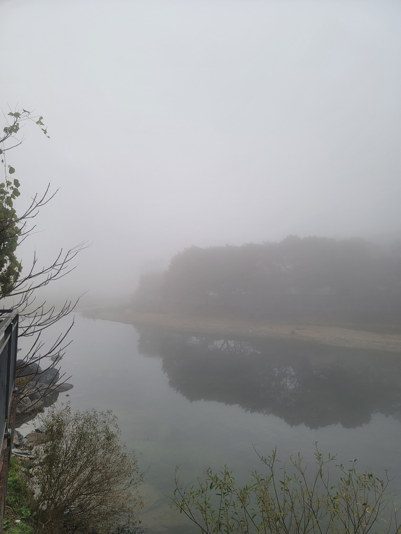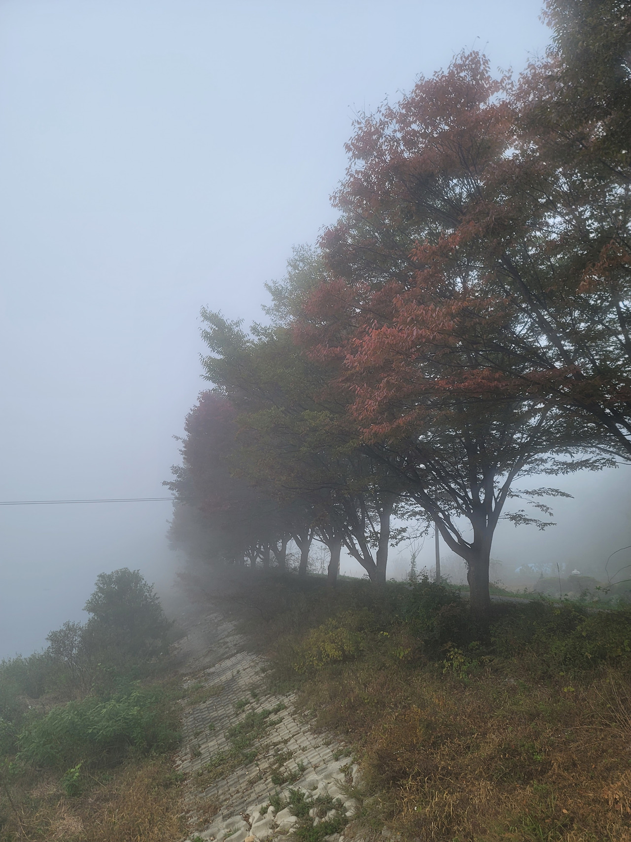 행촌교차로에서 괴강교로 가는 길은 쌍천을 따라간다. 이른 아침, 천변은 안개가 짙게 드리워져 있다. 뿌연 운무 속에 갇힌 강과 들녘은 한 폭의 수묵화다. 운무에 갇힌 강과 길, 흐릿하고 몽롱한 풍광이 신비롭다. 앞에서 달리는 동료들이 수묵화 속으로 들어가는가 싶더니, 이내 운무 속으로 사라진다. 나도 따라 안갯속에 묻힌다.