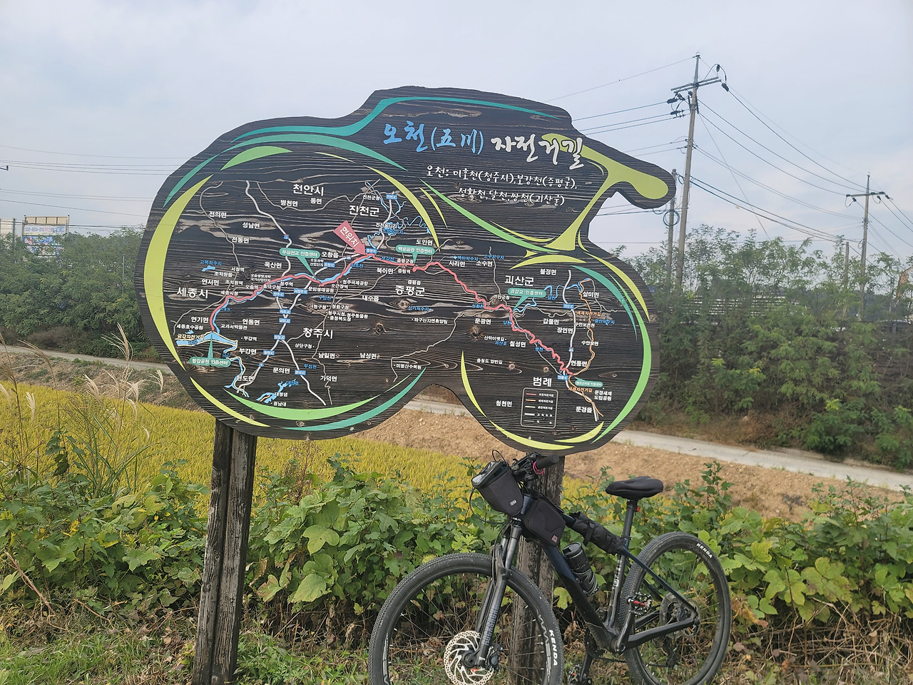 국토종주 자전거길에는 하늘을 닮은 파란색 선이 그어져 있다. 라이더들은 그 푸른 선을 따라 페달을 밟고, 그 선을 따라가면 마음이 편안하다. 가야 할 길을 정확히 가고 있다는 것을 의미하기 때문이다. 고향 냄새 은은한 길을 달리다 보니 갑자기 파란 선이 뚝 끊긴다. 국토종주 길에 파란 선이 끊기는 일은 자주 있는 일이지만, 불규칙하고 갈래길이 많은 시골길에서 파란 선이 끊기니 당황하지 않을 수 없다. 감으로 그냥 직진을 했는데, 강 건너 있는 무심천인증센터를 지나치고 말았다. 한참을 달리다가 길을 잘못 든 걸 확인하고 5km 정도 알바를 하고서야 인증을 할 수 있었다.