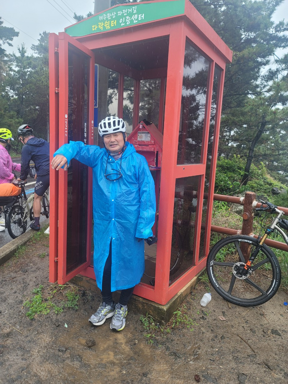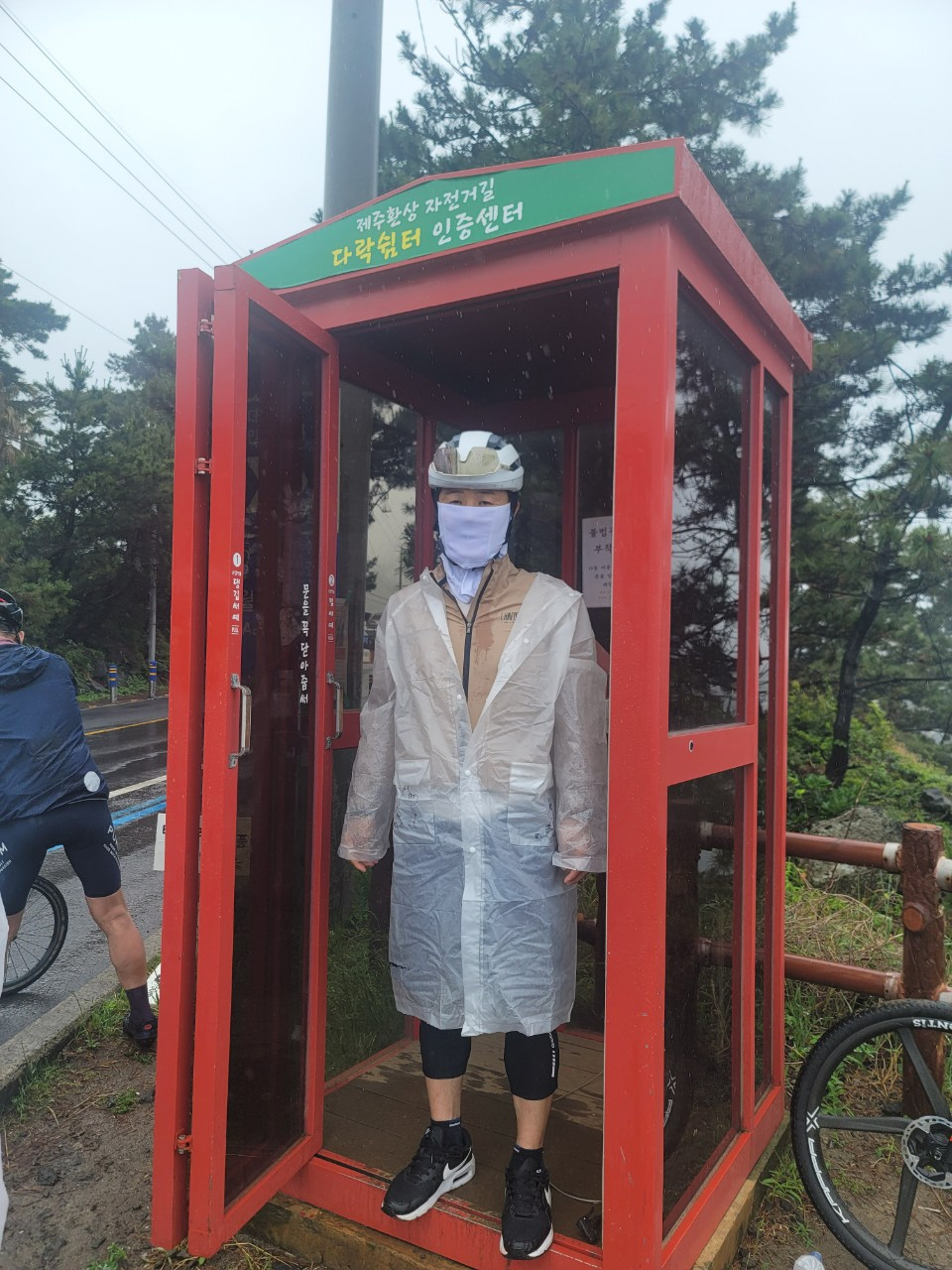 12시가 다되었다. 비도 피할 겸 바다가 보이는 음식점에서 허전한 배를 채우기로 했다. 제주 바다 내음 듬뿍 담긴 해물탕으로 첫 끼를 여유 있게 마쳤는데도 비는 그치지 않는다. 준비해 간 우비를 뒤집어쓰고 빗길을 달린다. 비가 조금씩 거세지더니, 두 번째 다락쉼터 인증센터까지달려도 비는 그치지 않는다. 커피숍에서 커피 한잔 마시며 비가 주는 쉼표를 잠시 즐긴다.