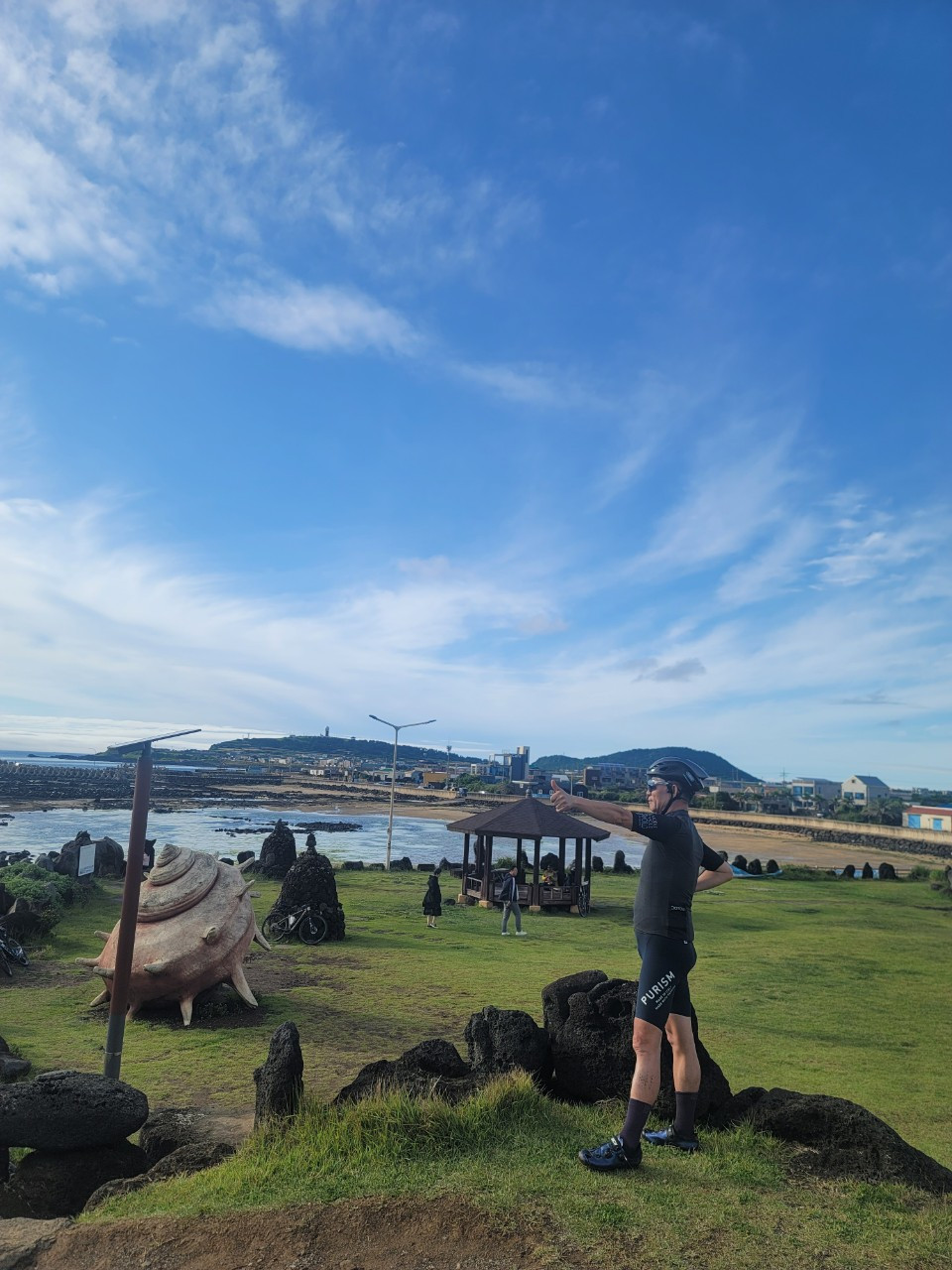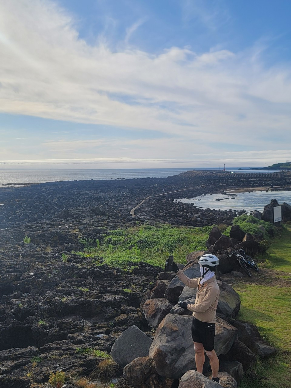 오후 4시쯤 되자 거짓말처럼 비가 그치더니, 구름 사이로 햇살이 삐친다. 잿빛 구름이 서서히 걷히면서 하늘은 서서히 바다의 빛을 닮아가고 있다. 해거름 마을공원을 지나 모슬포까지 70여 km를 달렸다. 빗길을 달려온 몸이 무겁게 늘어진다.