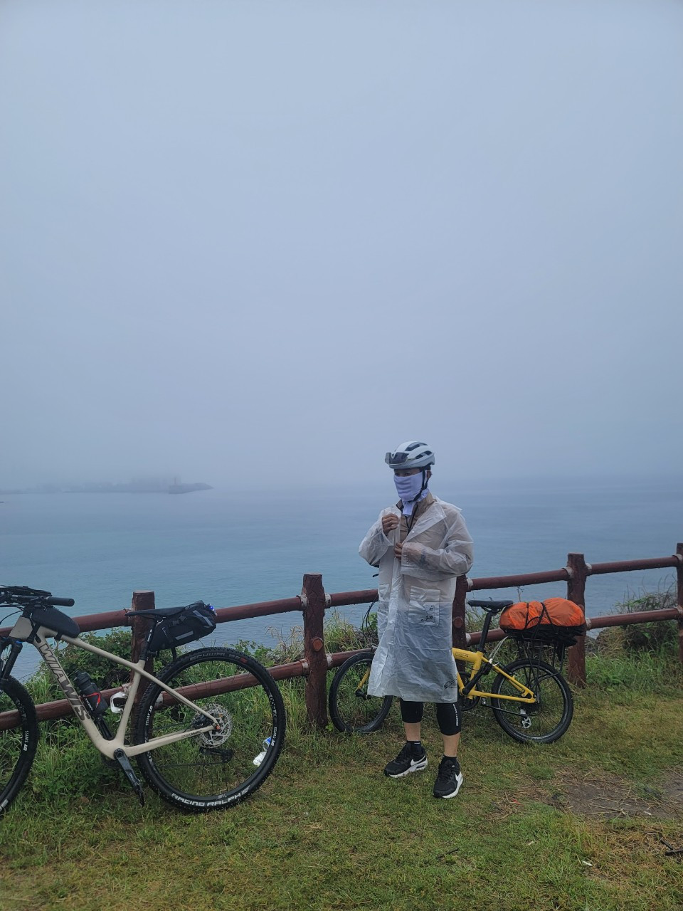 비는 여전히 추적거리지만, 라이딩을 할 수 있을 정도여서 그나마 다행이다. 비바람을 뚫고 바다를 따라, 도로를 따라, 마을을 건너 달린다. 네 개의 뜨거운 심장을 비바람에 식히며 달린다.