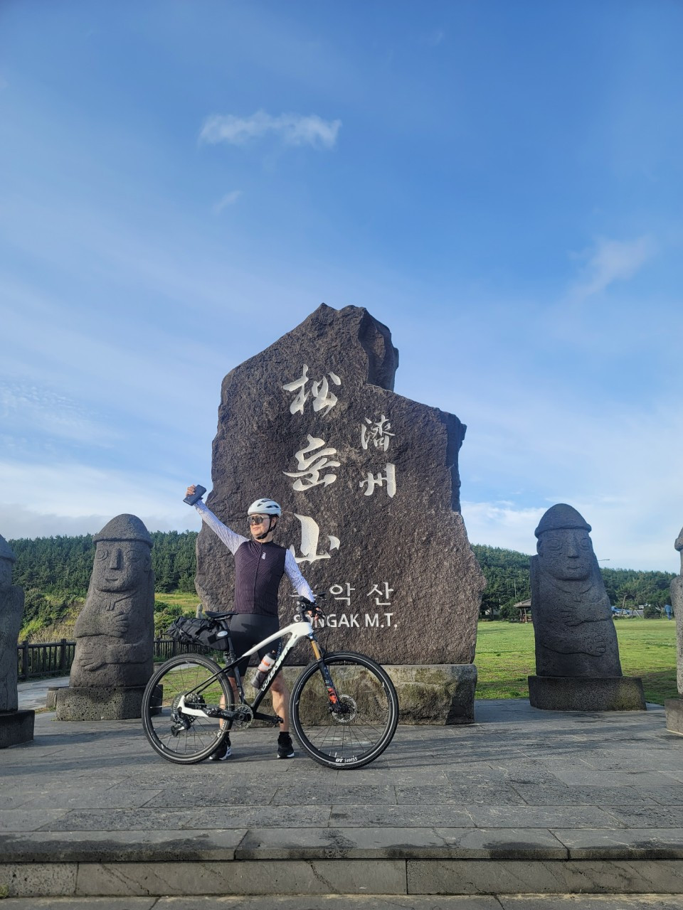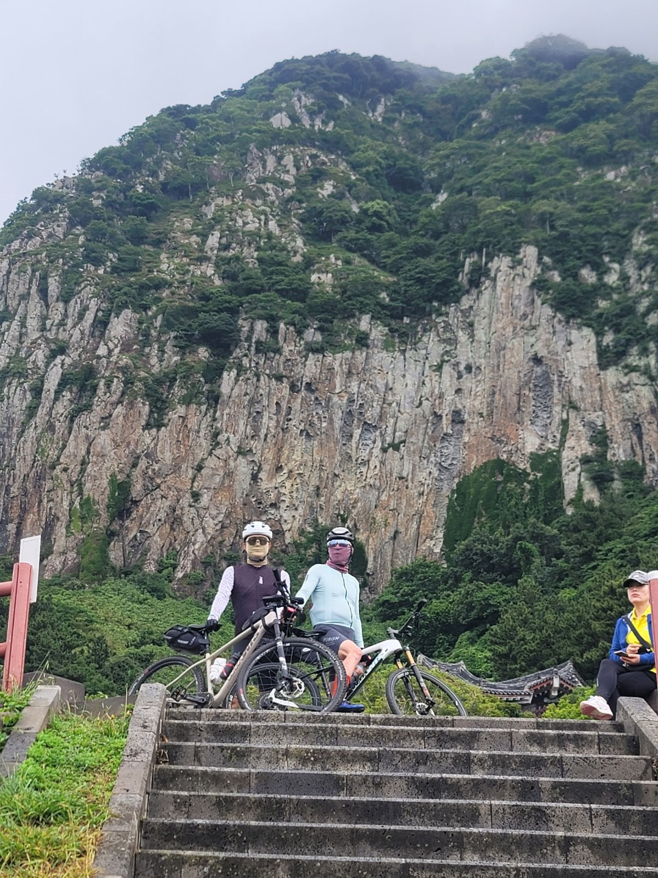 송악산을 떠나 중문관광단지까지 가는 길은 바닷길을 벗어나 오르막과 내리막이 반복되는 공도가 지루하게 이어진다. 또 도로와 도로가 연결되면서 라이더들의 안내선이 갑자기 사라지기 일쑤다. 두어 번의 알바를 거듭하면서 빠르게 달리는 차량들의 위협까지 감내해야 하는 길이다. 그러다 보니 상당 구간을 일행과 떨어져 달려야 했다. 그나마 자전거길이 나뉘어 있는 구간은 나무 그늘이 마음의 위안을 준다. 법환바당 인증센터에 가까워지니 다시 바다가 보이기 시작한다. 오랜만에 바다를 보는 것처럼 반갑다.
