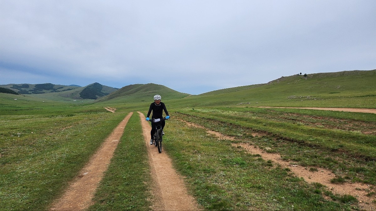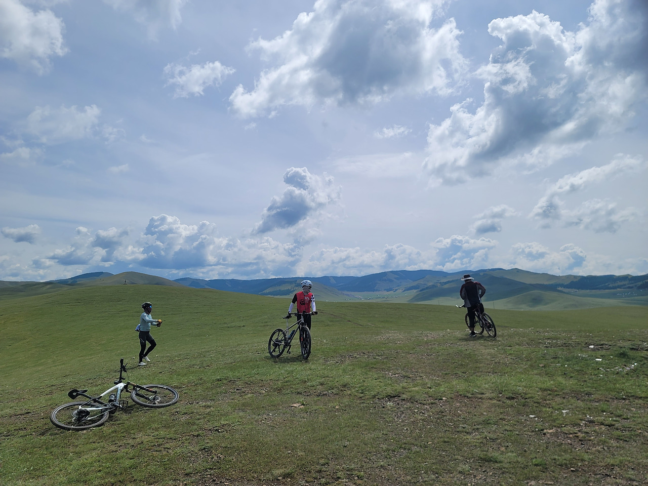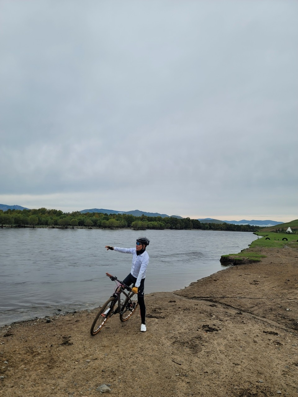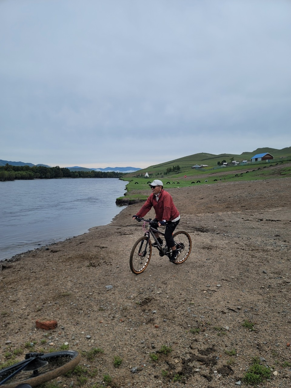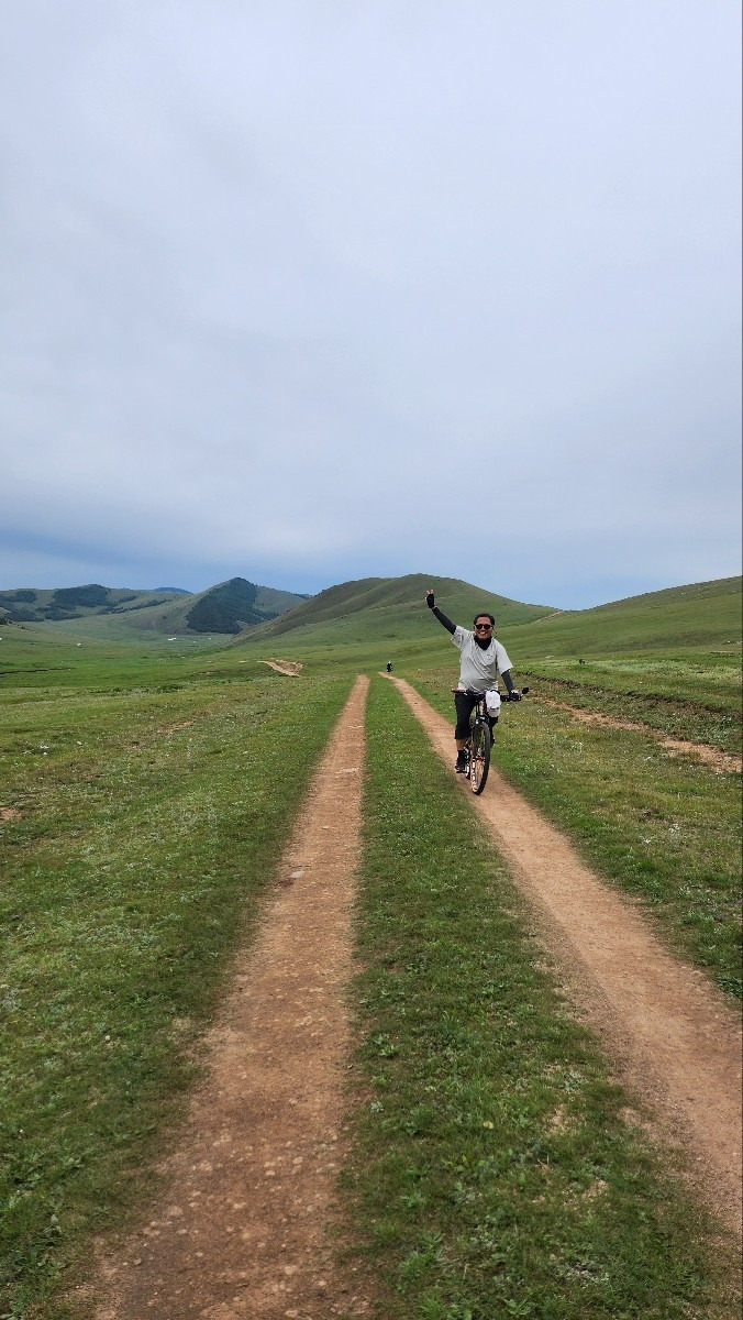 10시에 도착한다는 말이 오질 않는다. 사람을 보냈다는데 준비가 덜된 모양이다. 말은 오후에 타기로 하고, 자전거로 인근 톨 강변을 따라 두어 시간 라이딩을 하기로 했다. 이번에는 가이드 없이 우리끼리 라이딩을 하기로 해서 다소 걱정은 되었지만, 강이 이정표 역할을 할 테니 길을 잃을 염려는 없을 것이다. 숙소에서 바라볼 때는 낮아 보이던 산이 막상 자전거로 오르려니 만만치 않다. 앞산 첫 고개에 오르니 주변의 광활한 대지가 한눈에 들어온다. 구릉이 구릉으로 이어지고 푸른 초원이 드넓게 펼쳐있다. 그 초원을 가로지르는 톨강을 따라 페달을 밟는다. 그리 높지 않은 구릉이 오르내리막을 반복하면서 꽤나 힘이 들게 한다. 뒤따라 오던 歲 아우가 점점 뒤처지더니 아예 누워버린다. 어제 무리하게 마신 술 탓일 게다. 결국 세 아우는 첫 고개에서 숙소로 돌아가기로 했다.