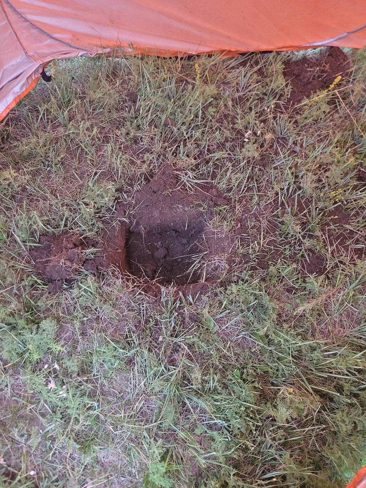 일은 그날 밤에 또 벌어졌다. 잦아들다 내리기를 반복하는 빗방울이 잠을 설치게 했다. 언뜻 시계를 보니 새벽 2시. 갑자기 화장실에 가고 싶었다. 텐트 출입문을 여는데 들개 두 마리가 입구에 떡 하니 누워있었다. 한밤중 무섭기도 하고 난감했다. 급히 문을 닫고 "워이 워이" 소리도 내보고, 텐트를 툭툭 쳐서 쫓아보려 했지만 잠에 취한 건지 꿈쩍도 않는다. 결국 급한 내가 살 길을 찾아야 했다. 반대편 비상 쪽문을 열고 간신히 빠져나와 도둑고양이처럼 살금살금 간이 화장실로 향했다. 비 내리는 오밤중에 해괴망측한 이 광경은 지켜보는 사람이 없어 다행이다 싶을 정도로 민망한 일이었다. 그래도 무서운 들개에게 들키지 않고 무사히 일처리를 마쳤다.