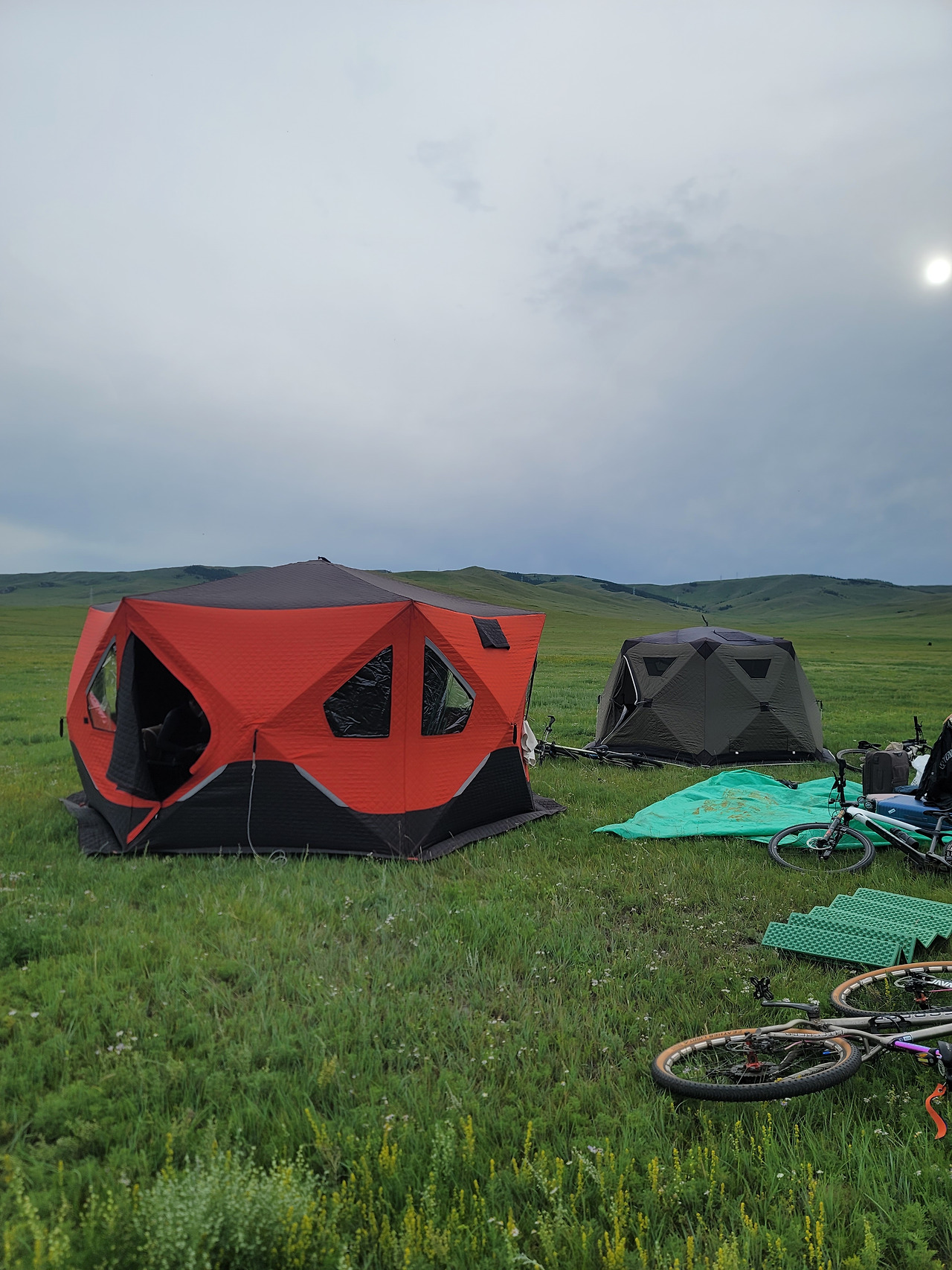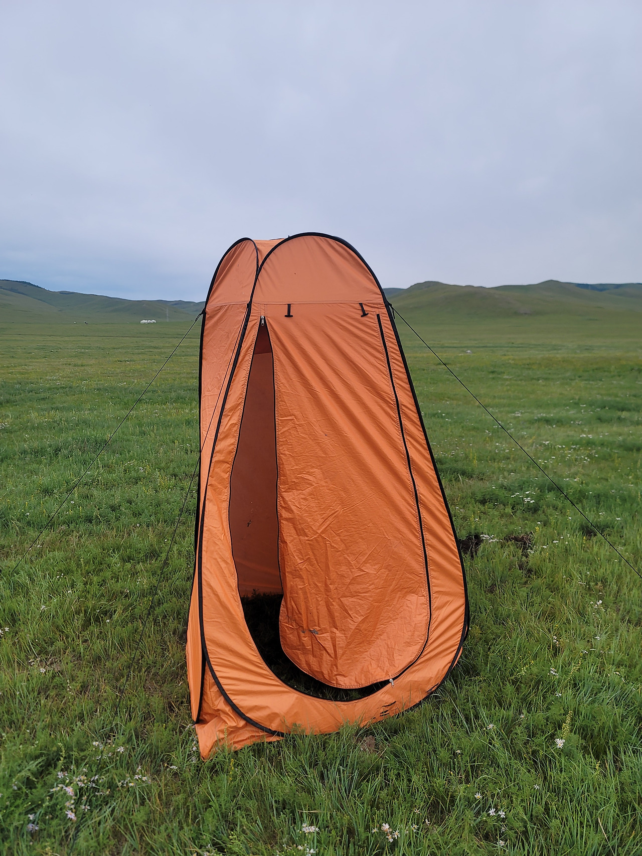 첫날 초원 라이딩을 마친 저녁나절은 그래도 다행이었다. 텐트 인근에 간이 화장실을 설치했기 때문이다. 간이 화장실은 땅에 구덩이를 파고 이동식 텐트를 친 정도였다. 비데까지 설치한 깔끔한 화장실에 익숙한 우리에게는 이 조차도 어색하기 그지없지만, 그나마 민망함을 가릴 수 있어 다행이었다. 춘이 아우가 배설하고 오는 나를 보며 부럽다고 한다. 별개 다 부럽다 생각했는데, 알고 보니 아우는 몽골에 온 이후 이틀째 변을 못 보고 있다 한다. 환경이 바뀌면 변비가 온다는 아우에게는 내가 부러울만하다.