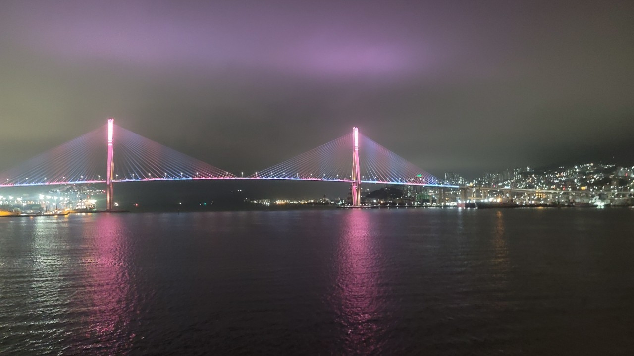 가벼워진 몸으로 열혈청춘들과 함께 다시 갑판에 올랐다. 이미 어둠이 삼킨 부산항 앞산 등성이에는 인간들의 불빛이 빼곡히 뿌려지고, 까만 바다는 도시의 불빛을 영롱하게 담아내고 있다. 바다를 가로지르는 다리는 오색 불빛을 두르고 실루엣처럼 부드러운 곡선을 그리고 있다.
