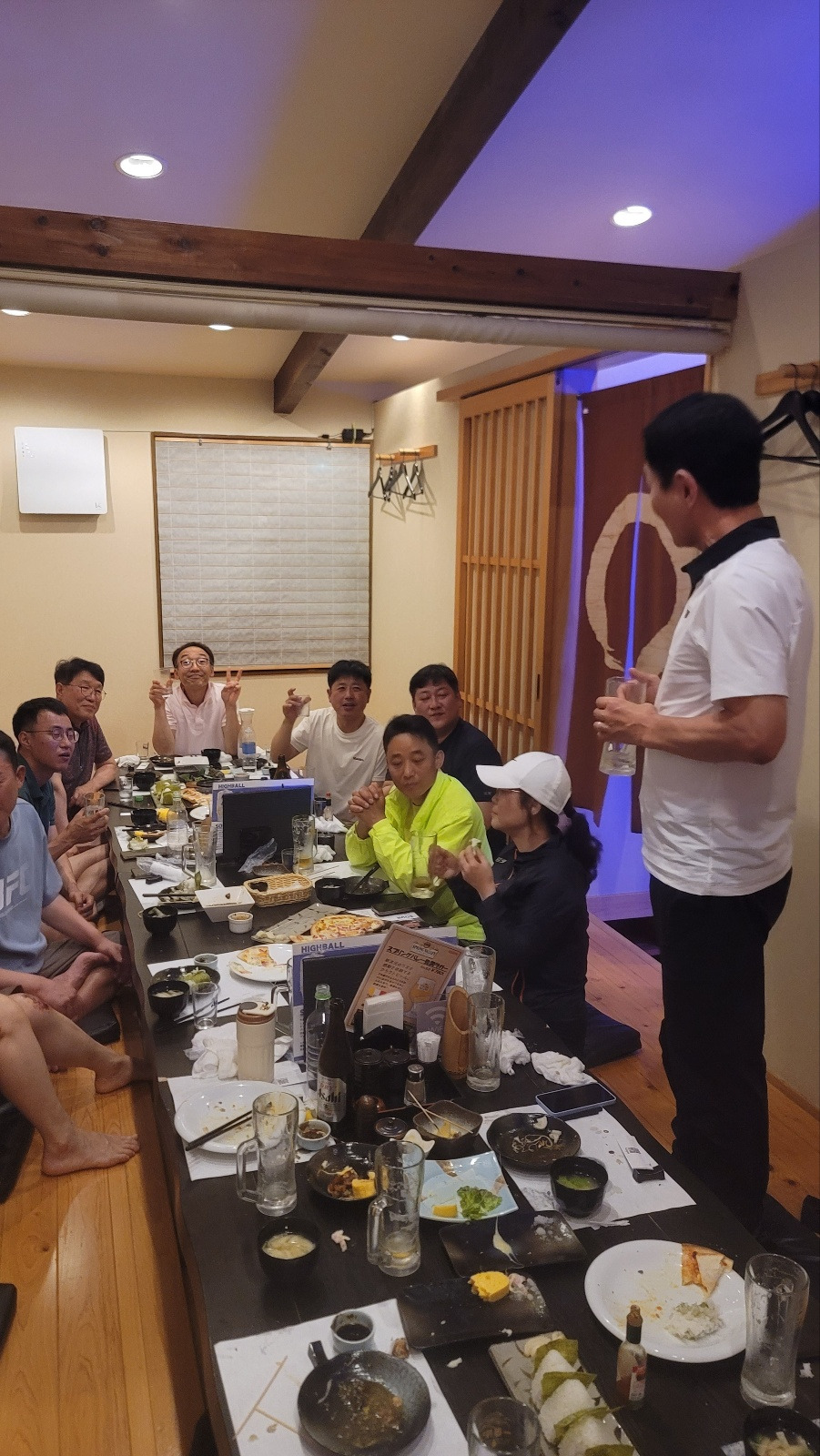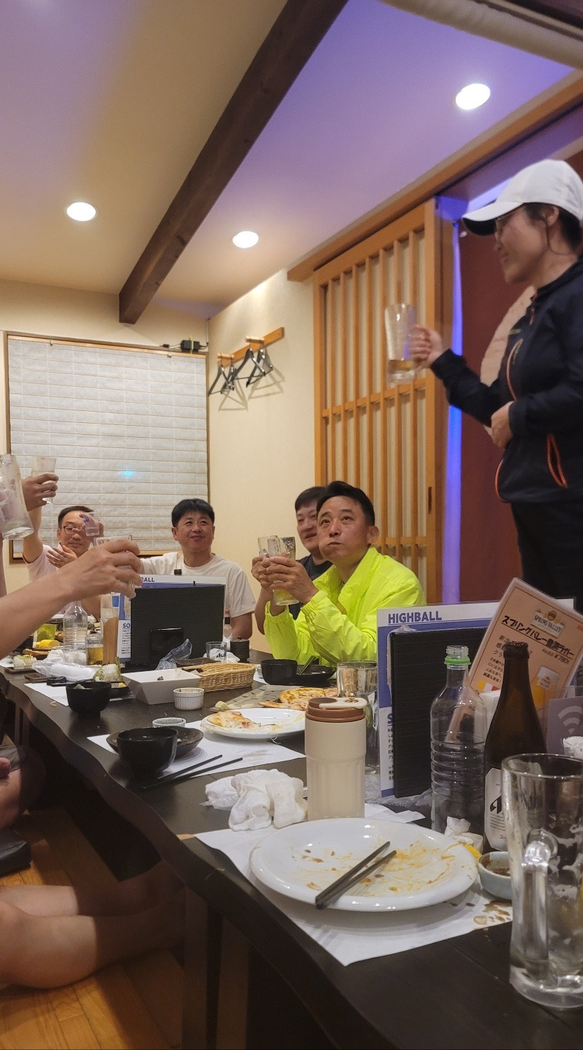 샤워로 하루의 피로를 털고 1층 라운지에 모이니, 어느덧 해가 저물었다. 인근 이자카야 식당에 저녁이 준비되었다 한다. 하나둘 불을 밝히는 가로등이 우리의 발길을 비춘다. 제법 큰 규모의 식당엔 이미 홀뿐만 아니라, 이방 저방에서 손님들의 시끌벅적한 웃음소리 가득하다.