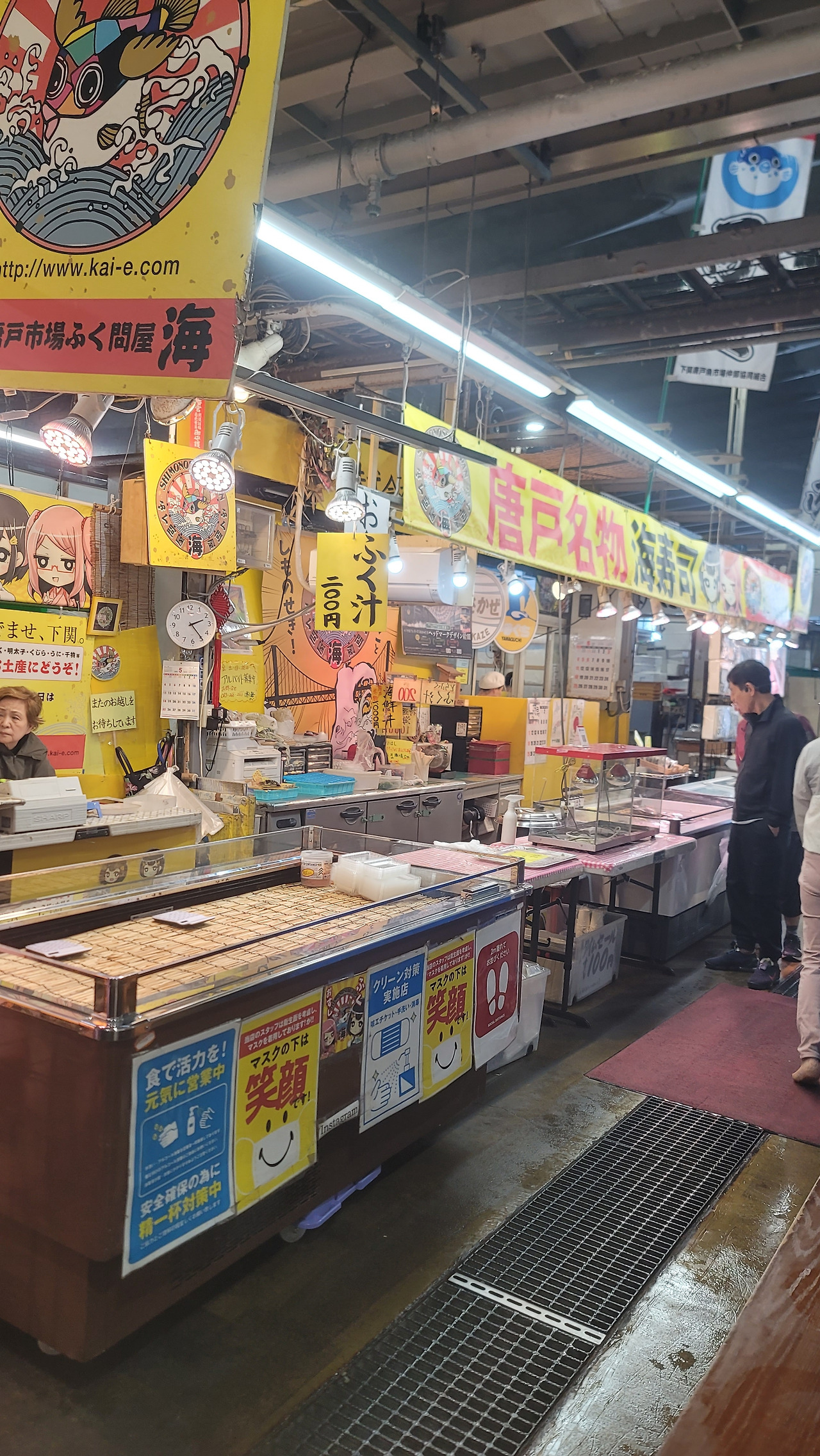 점심때가 넘었으니 배를 채워야 한다. 우리 일행은 가라또 시장에 가기로 했다. 1909년 거리 장터로 시작하여 오랜 역사를 자랑하는 이 시장은 특히 복어회를 비롯, 각종 스시와 초밥을 저렴하고 푸짐하게 팔고 있어 단순한 시장을 넘는 시모노세키의 관광 명소라 한다.