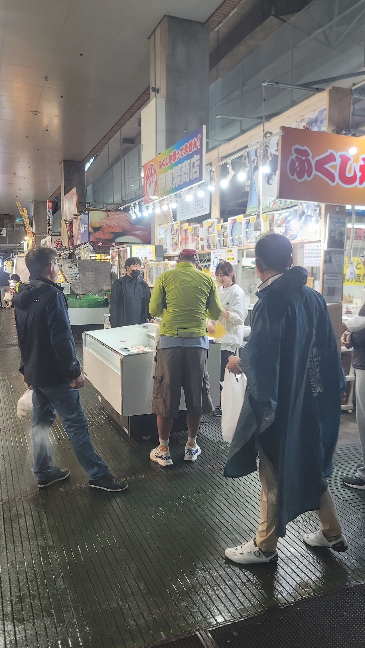 항구의 적막과는 달리 가라또시장은 전혀 다른 풍경을 보여준다. 바깥은 눅눅한 바다 안개와 회색빛 우울이라면, 안쪽은 왁자한 사람 냄새와 생선 비린내가 교차한다. 호객하는 상인의 목소리, 여행객들의 시끌벅적한 웃음소리가 쉴 새 없이 섞여 흐른다. 새벽부터 열린 장이 막바지에 이르러 서서히 문을 닫는 가게도 있고, 막판 떨이를 외치며 할인을 한다. 이곳저곳 둘러보며 한 접시에 천 엔(약 만 원) 정도 하는 초밥과 초밥을 흥정해서 조금은 싼 가격으로 잔뜩 사들고 시장 2층 구석에 자리를 잡았다. 비는 여전히 바깥을 적시고 있다. 정종 한 잔씩 하며 우리들만의 만찬을 즐긴다. 남을 것 같던 초밥과 초밥이 감쪽같이 사라지고 부른 배를 두드린다.