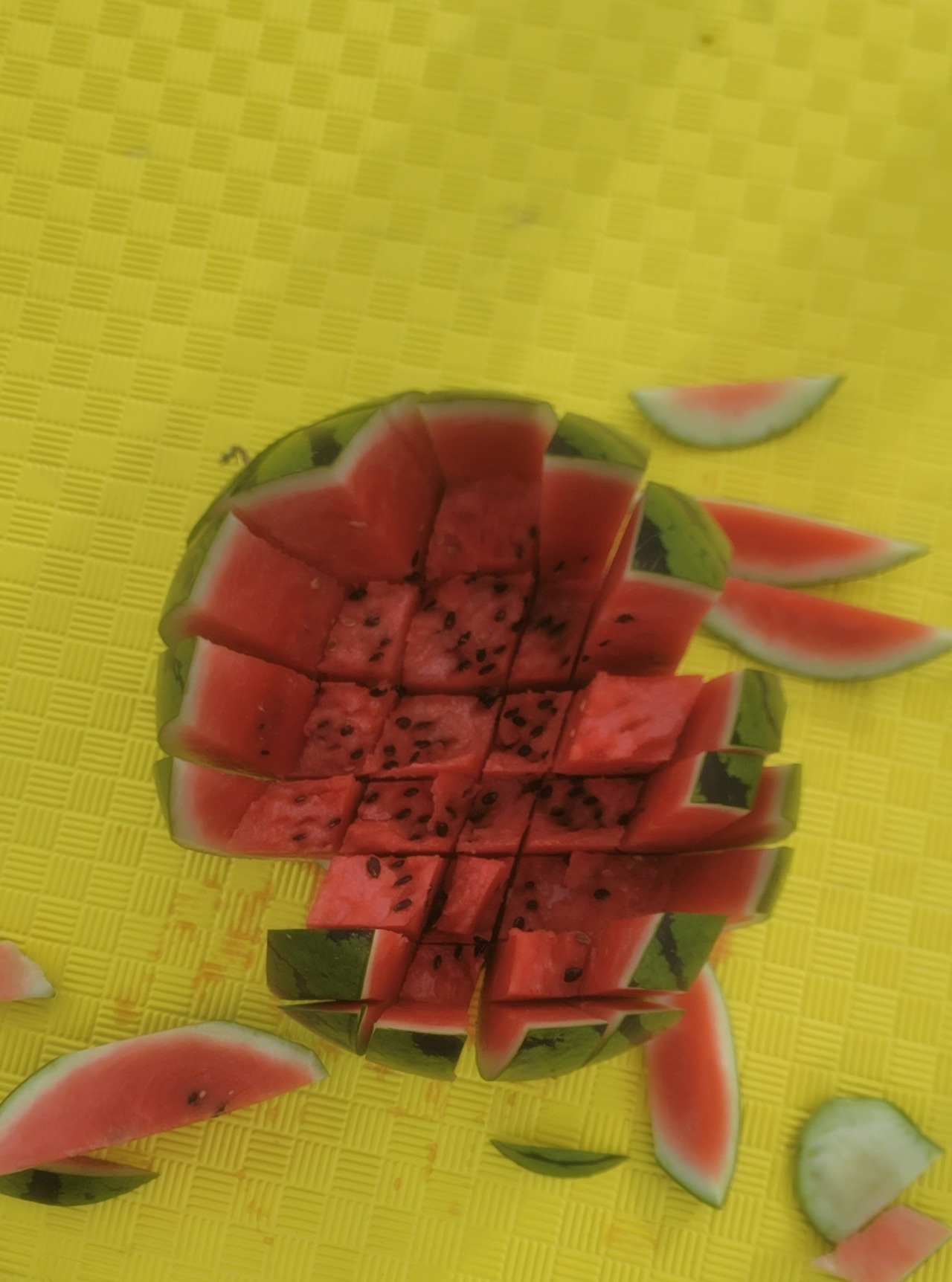 지치고 목이 타들어갈 때쯤, 잠시 휴식을 취하는데 큼직한 수박이 등장한다. 목마를 때 수박만큼 좋은 과일이 어디 있겠는가! 모두들 한두 조각씩 먹고도 남을 만큼 큰 수박이 지친 몸들을 붉은 행복으로 충전시켜 준다. 여행사 대표의 세심한 배려가 고맙다.