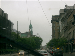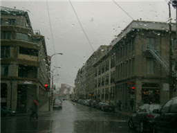 다운타운은 젖은 아스팔트 위로 차들이 엉켜 있다. McGill University 주변의 거리에는 오래된 건물들이 비를 맞고 서 있다. 붉은 벽돌은 빗물에 더욱 짙어졌고, 회색 하늘 아래 도시의 색감은 한 톤 낮아졌다.