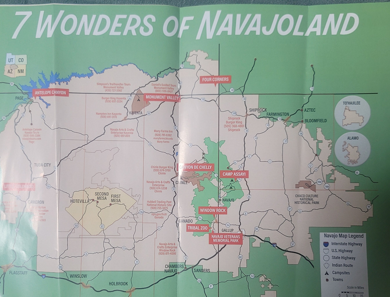 Four corners monument로 가는 길은 온통 붉은 황톳 빛이다. 이곳은 인디언들의 불행한 역사가 점철된 역사의 현장이기도 하다. 1800년대 중반, 미합중국이 이곳에 살던 인디언 나바호족을 뉴멕시코주로 강제이주 시키는 과정에서 수많은 인디언들이 전쟁과 기아와 질병으로 죽어갔다. 그럼에도 불구하고 나바호족의 끈질긴 투쟁 결과, 1868년 연방정부는 강제 이주의 잘못을 인정하고 나바호족의 고향 복귀를 허락하는 협정을 맺게 된다. 연방정부로부터 땅을 보장받은 나바호족은 기나긴 행군(Long Walk) 끝에 조상 대대로 이어오던 그들의 삶의 터전으로 다시 돌아올 수 있었다. 그 후 점차 땅을 확장하여, 지금은 그들이 관리하는 영역이 71,000 평방 km에 이른다고 한다. 나바호족은 그들의 거주지역을 나바호의 나라(Navajo Nation), 나바호의 땅(Navajo Land)이라 부르며, 애리조나주에 있는 윈도 록(Window Rock)을 수도로 하고 있다. 미국 속에 또 다른 국가가 존재하는 셈이다. 그들이 관리하는 구역에는 우리가 지금 가고 있는 Four corners monument를 비롯, 모뉴먼트 밸리, 앤틸로프 캐니언, 리틀 콜로라도 등 7개의 유명 관광명소가 있어 이들의 주 수입원이 되고 있다.