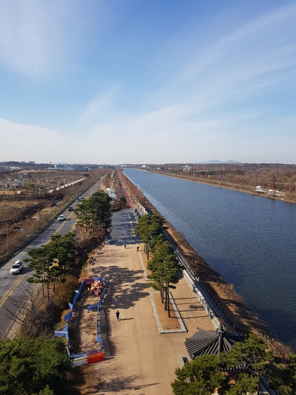 아라타워에 있는 정서진 관리사무소에서 국토종주 인증수첩을 하나씩 샀다. 인증수첩을 손에 들고 조금은 들뜬 마음으로 23층 아라타워 전망대에 올랐다. 망망대해 서해로부터 연결되는 아라뱃길의 관문, 아라서해갑문이 한눈에 들어온다. 고려 고종 대부터 명맥을 이어왔다는 아라뱃길은 서해와 한강을 잇는 우리 민족의 얼과 정서, 문화가 흐르는 뱃길이었다. 민족의 염원을 담아 명실상부한 운하의 형태로 뱃길이 다시 열린 지 10여 년이 흘렀다. 이 뱃길을 따라 천년의 역사가 도도하고 거칠게 흘렀건만, 강물은 그저 무심한 듯 흐르고 있다. 강물과 함께 흘러간 세월을 본다. 세월 속에 묻힌 역사를 본다.