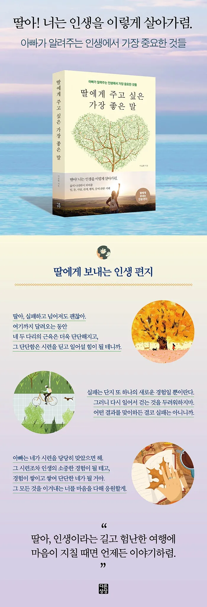 '작가님의 딸아이와의 추억을 담은 책을 인상 깊게 보았습니다. 혹시, 딸아이에게 전하는 인생 조언을 편지글 형식으로 써보시는 건 어떨지 제안드립니다.'