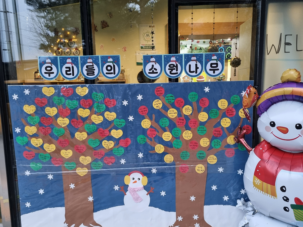 “할머니, 오늘 소원나무에 자기 소원을 쓰는 시간이 있었어요,