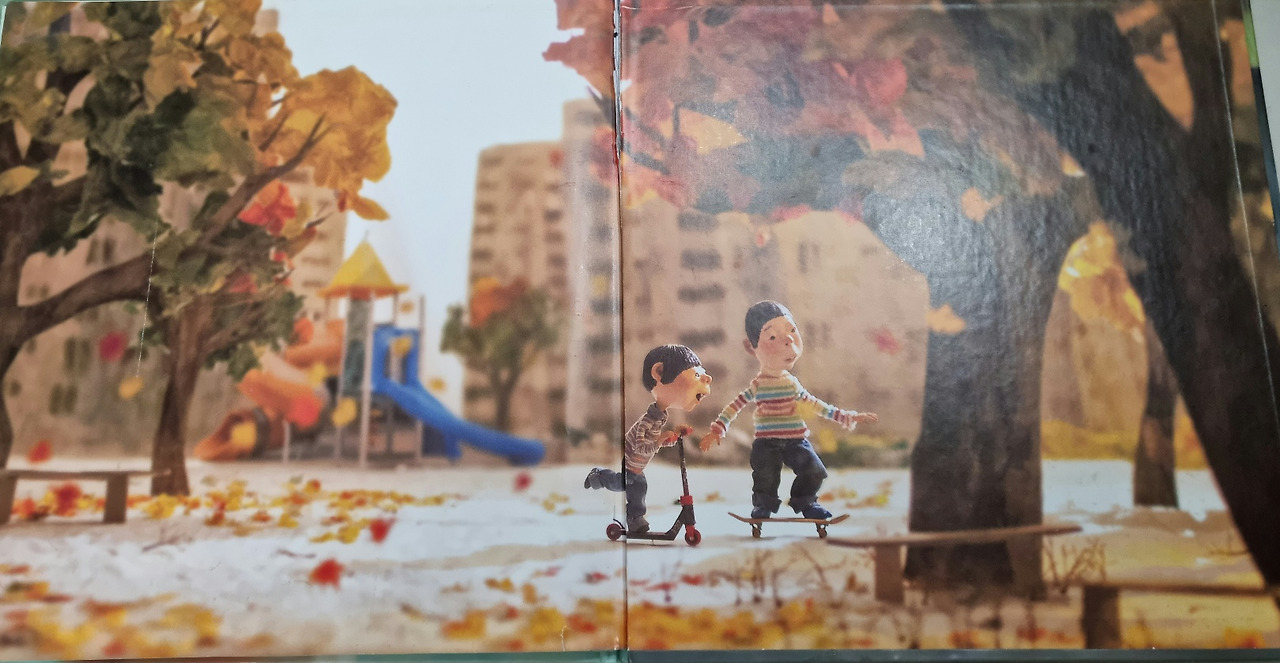 알사탕 책 끝 페이지에 있는 그림이다. 어느 날 스케이트보드 탄 그림을 가리키며