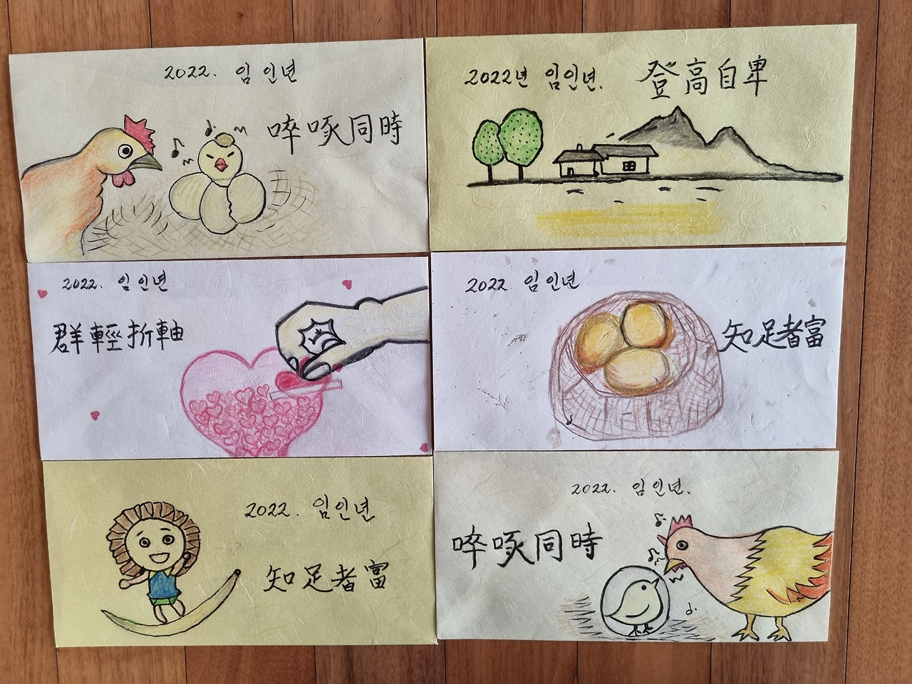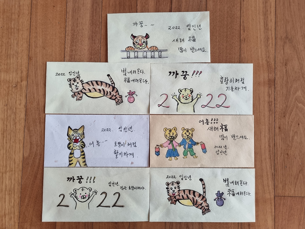 몇 년 전부터 치열하게 다녔던 귀성길에 합류하지 않으니 시간이 넉넉해졌다. 호기심 천국인 나는 새로운 즐길 거리를 찾아 4~5년 전부터 설날 세배 봉투를 만들기 시작했다. 해마다 아이디어가 엎 되어서 못 그리는 그림도 바늘귀만큼 발전되어 기분이 상큼하고 마냥 좋다.