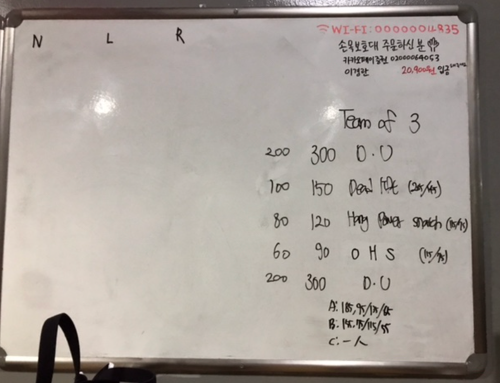 방문했던 날에는 3명이서 팀을 짜서 함께 기록을 내야하는 운동을 했다.