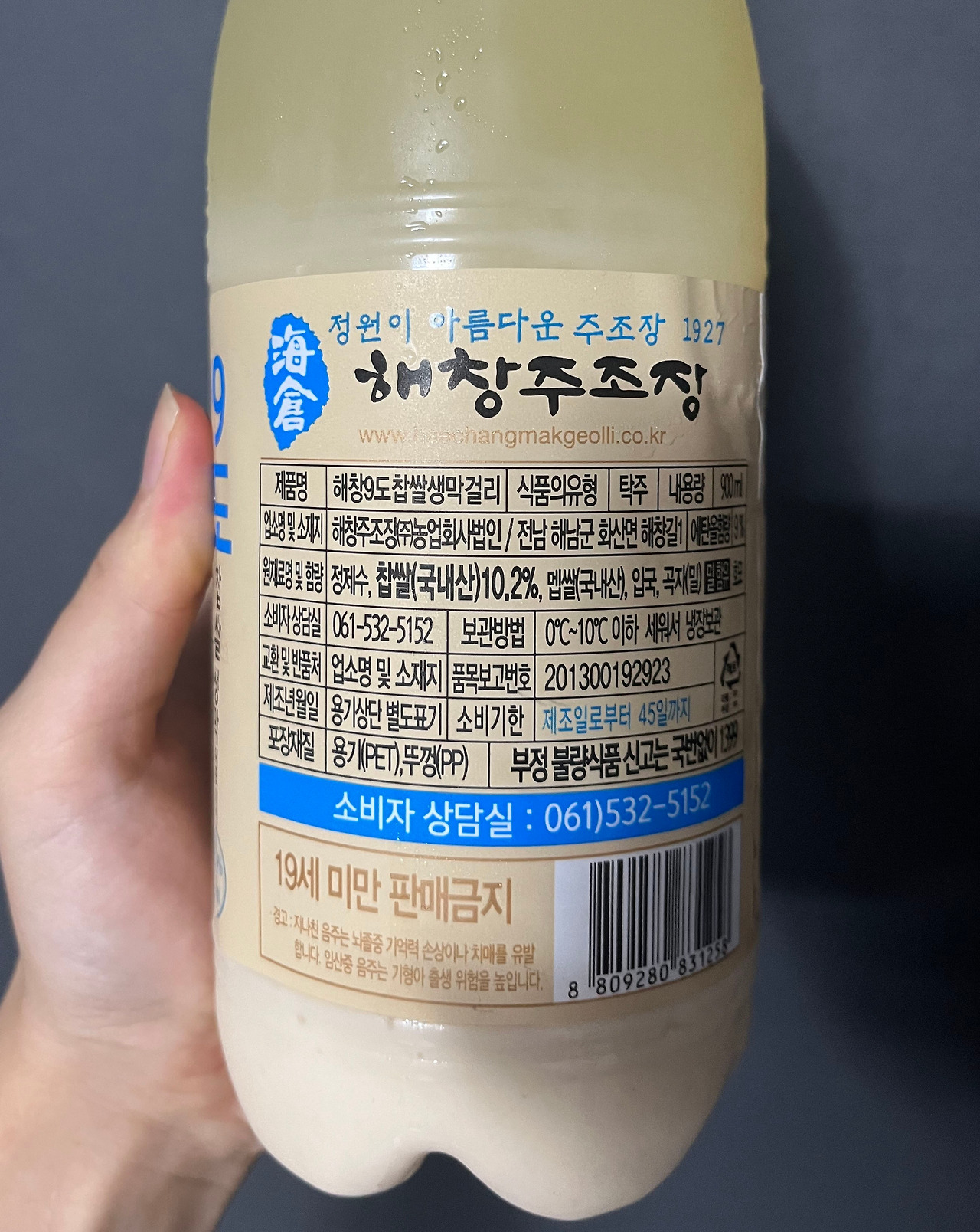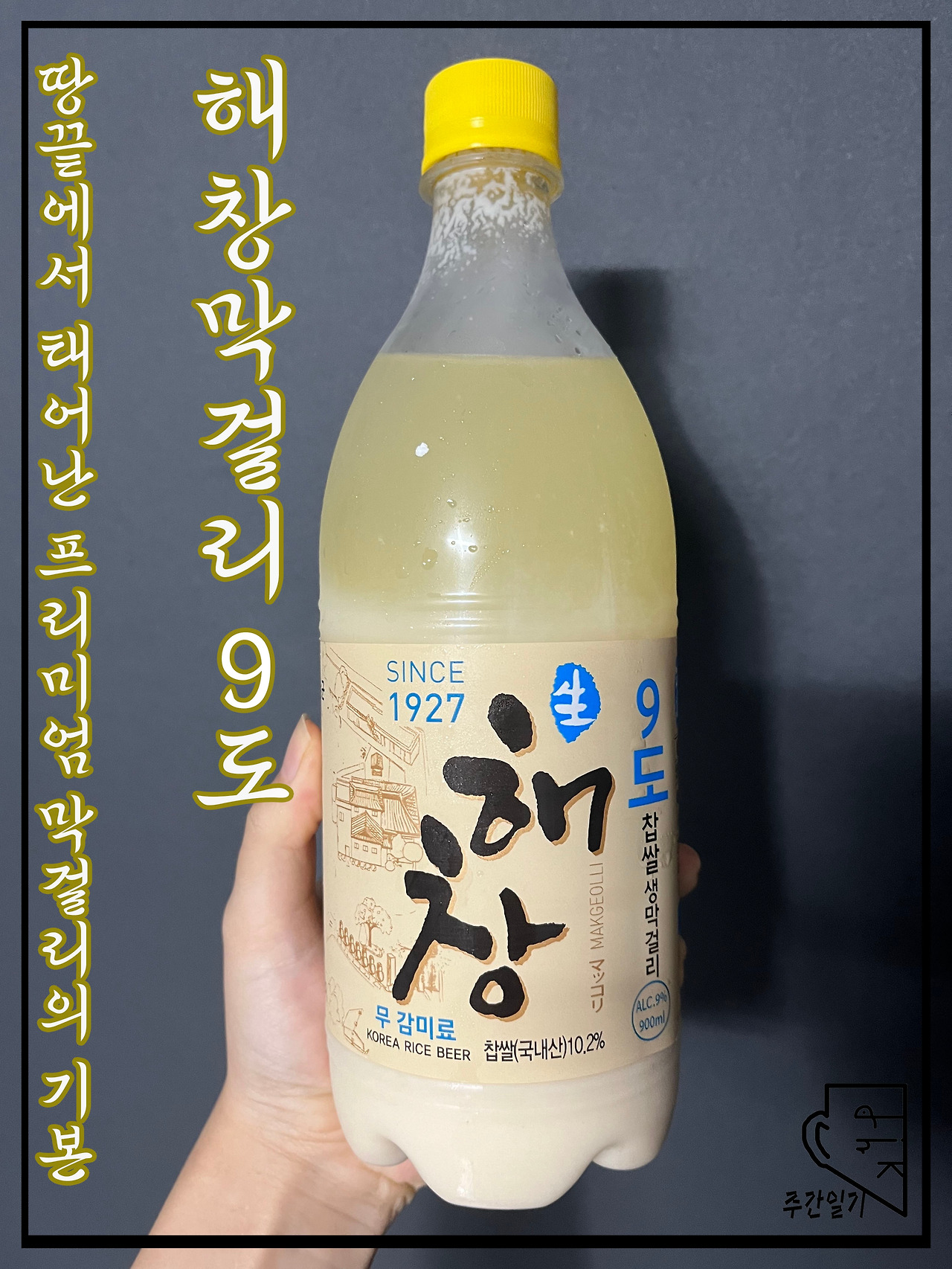 그래서 오늘은 어느 정도 가격이 있는 막걸리는 기존의 지역 막걸리와 얼마나 차이가 날까, 하는 궁금증과 함께 프리미엄 막걸리 중 기본이라고 할 수 있는 술을 한 병들고 왔다. '해창막걸리 9도', 도수에 따라 가격이 천차만별로 변하는 시리즈의 첫 번째이다.