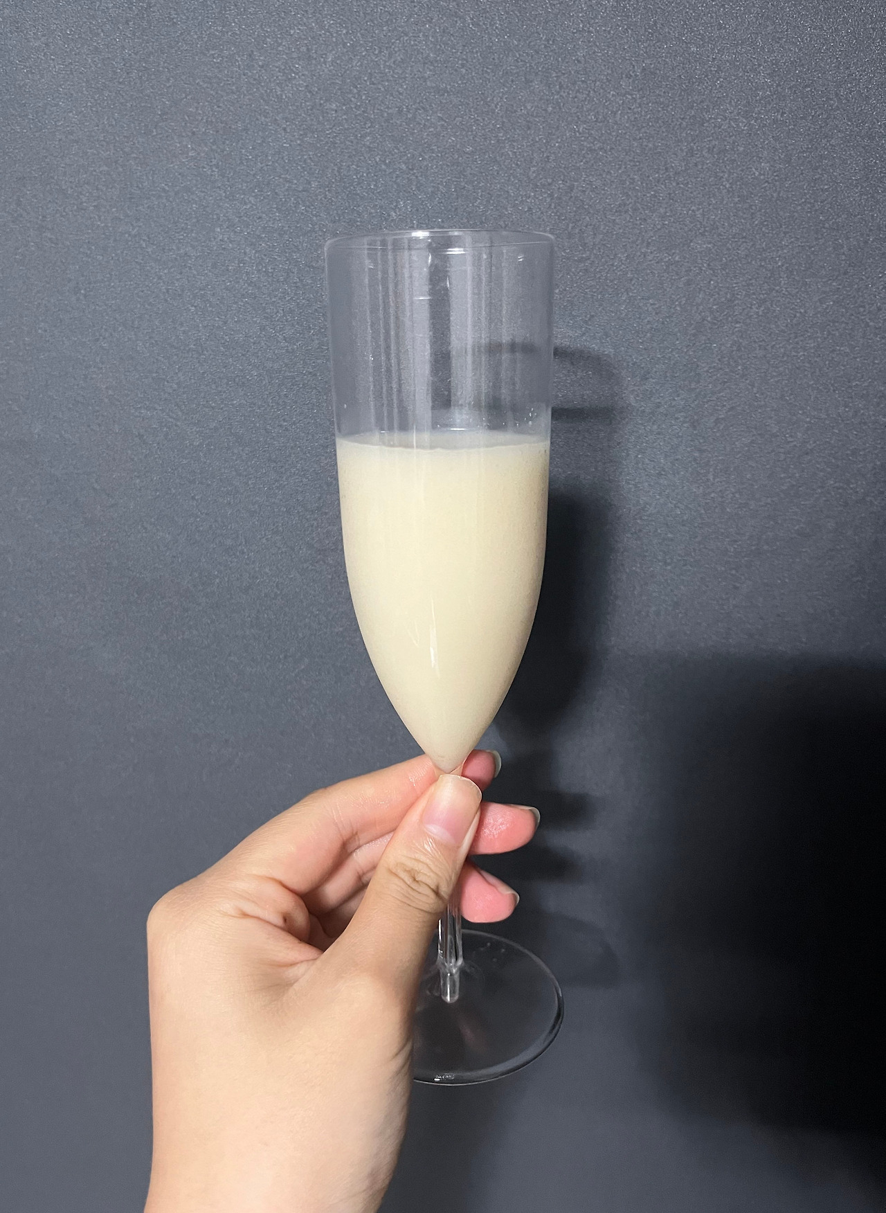 잔에 따른 술은 한눈에 보기에도 굉장히 곱다. 약간 진한 우유를 잔에 따라 놓은 듯 한 색깔을 선보이며, 전체적으로 눅진한 질감을 가지고 있다.