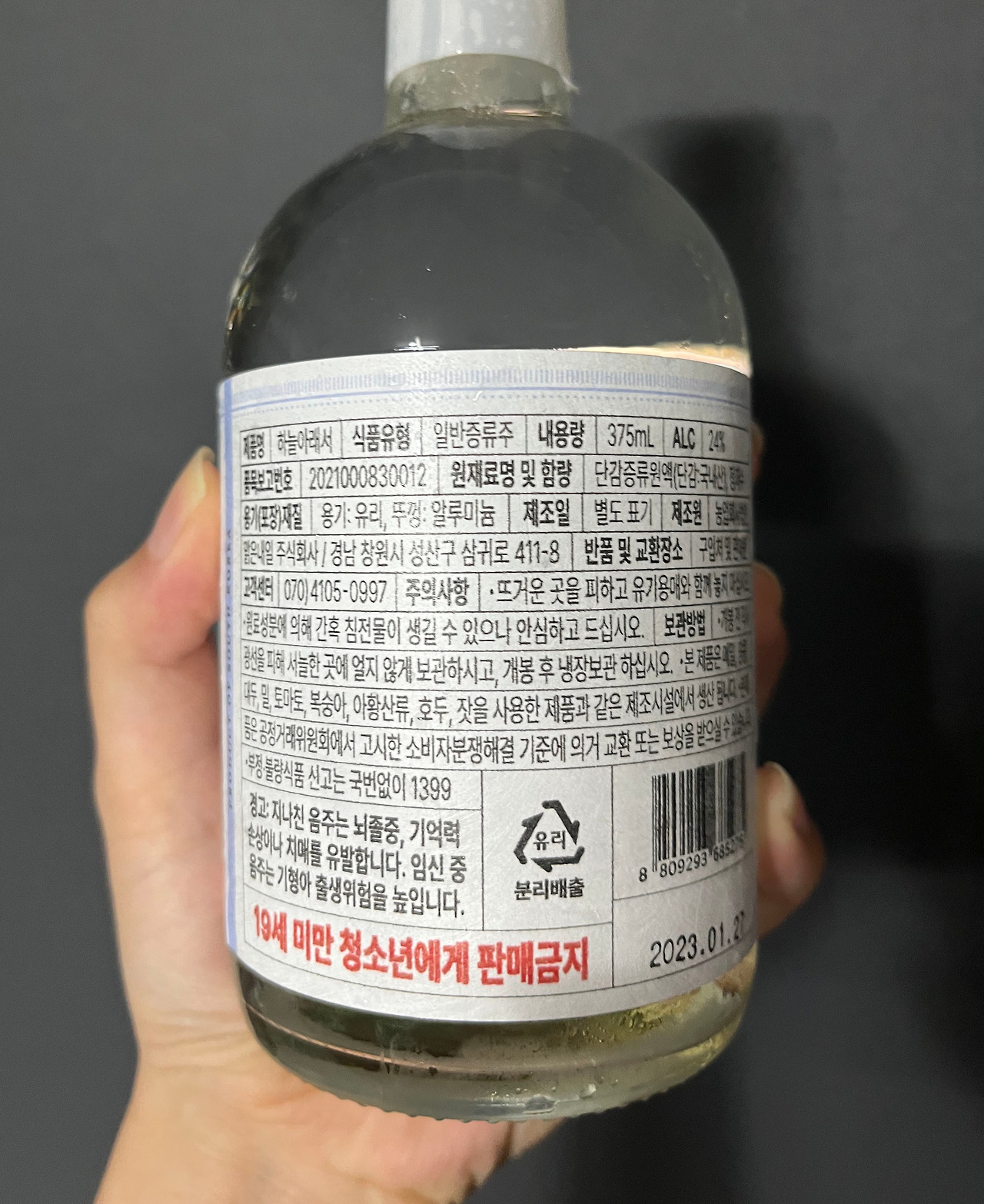 이걸 알게 된 참새가 어찌 방앗간을 그냥 지나치겠는가, 당연히 곧바로 집어왔지. 사실 연예인들과의 협업으로 탄생한 소주를 여럿 먹어본 기억이 있는데, 아직까지 인상적이었던 술은 내 기억에 없다. 대부분이 그저 그랬거나, 괜찮다고 하여도 재구매 용의가 있는 정도는 아니었다. 그렇기에 부디 이번 만은 다르길 바라며 '하늘아래서'의 뚜껑을 열어보도록 하겠다.