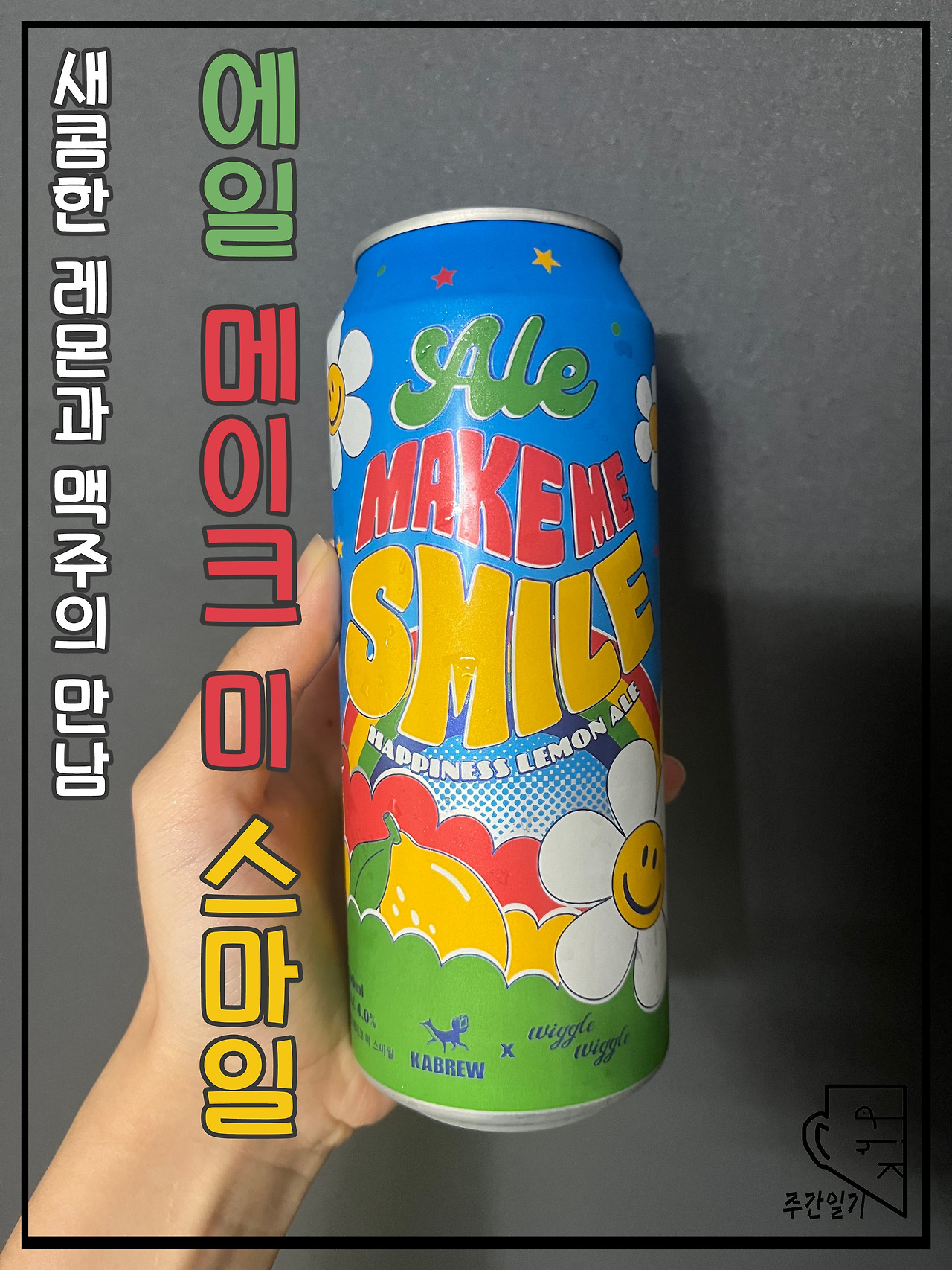 실제로 맥주를 마신 지 오래되기도 했고, 이러한 느낌으로 오늘은 딱 맥주를 먹어야겠다는 생각이 들어 곧바로 편의점으로 향했다. 잠깐 안 온 사이에 언제 이렇게 다양한 종류가 생긴 것인지. 잠깐 고민하다가 그중 가장 생기 발랄하게 생긴 맥주를 집었다. '에일 메이크 미 스마일', 웃게 만들어주는 에일이라는 뜻인데, 이름만 봐서는 어떤 맛을 가지고 있을지 감이 잘 오지 않는다.