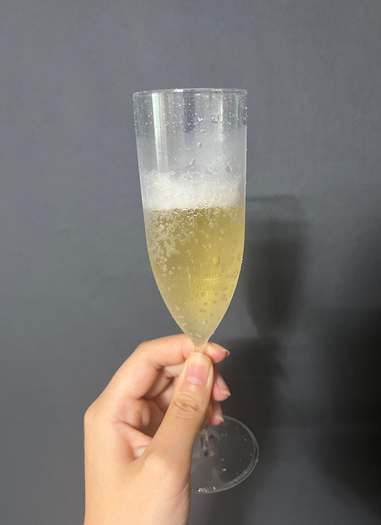 잔에 따른 술은 영락없이 레몬이 퐁당 빠진 듯한 색깔을 선보인다. 노르스름한 색과 그 안에서 솟아오르는 기포가 어우러져 참으로 달고 시원해 보이는 느낌을 가져다준다.