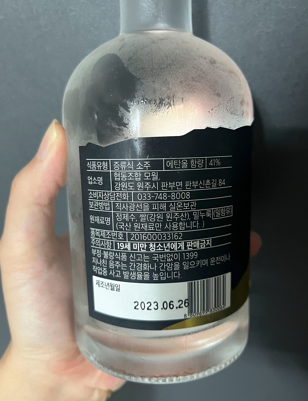 가벼운 무게와 입 안을 채우는 고소한 쌀의 풍미를 가지고 있는 친구입니다. '모월 인'은 '2020 우리 술 품평회 대통령상'을 수상한 경력을 지니고 있는데, 술을 머금자마자 입상한 이유를 바로 이해할 수 있게 됩니다. 참으로 새벽 같네요. 정말 한 방울 한 방울 이슬을 모아 담아 놓은 듯한 소주입니다.