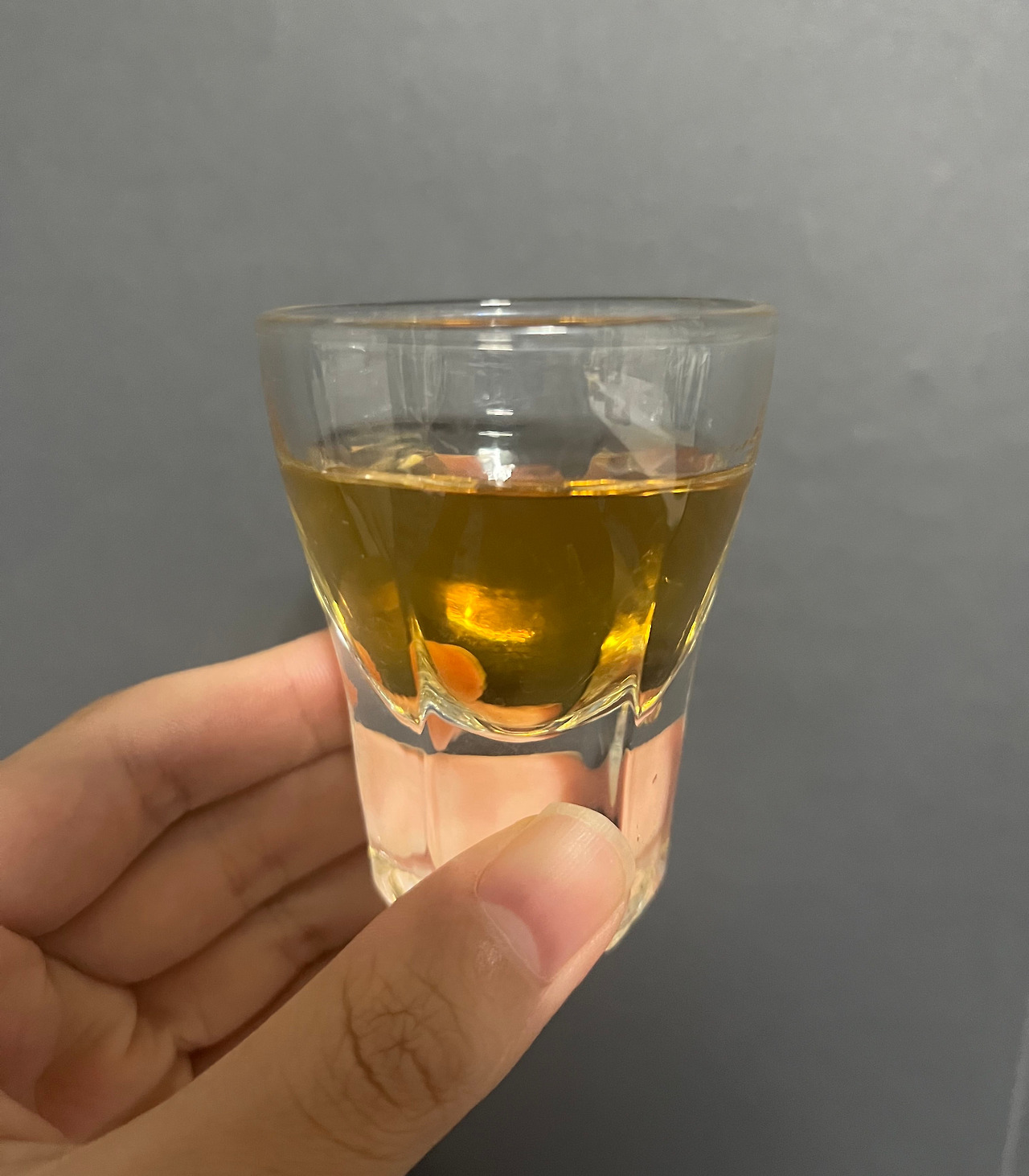 잔에 따른 술은 흔히 마시는 위스키와 비슷한 색을 보여준다. 짙은 노란 빛깔을 가진채 반짝이는 것이 전통주에서 쉽게 볼 수 없는 색이라 그런지 확실히 맛이 기대되게 만든다.