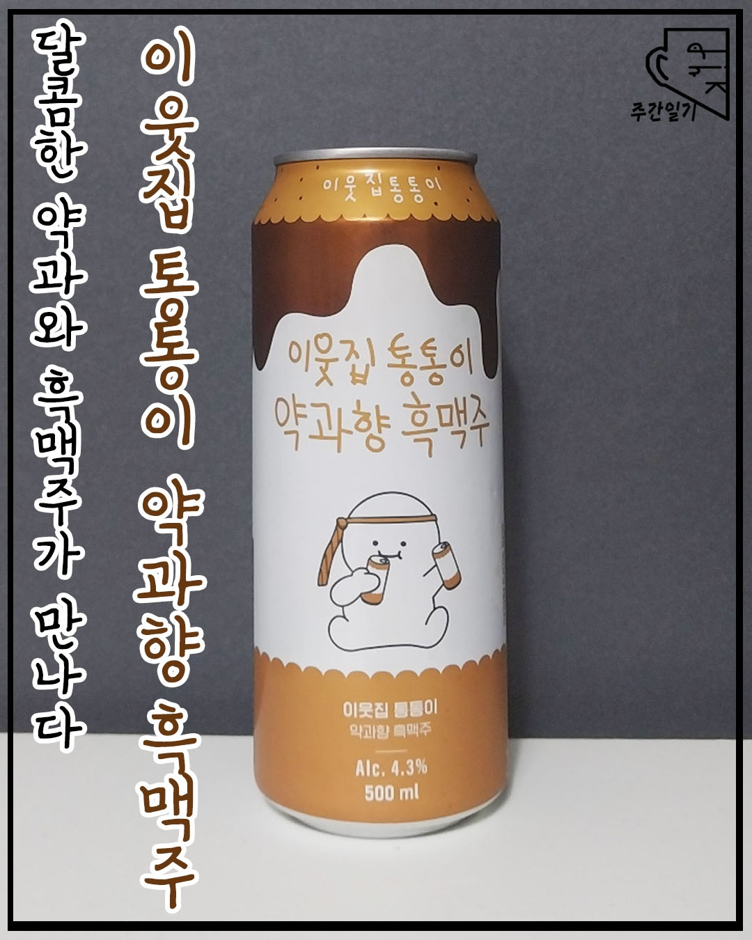 오늘 내가 가져온 술 역시 눈길을 끌 수밖에 없는 이름과 맛을 지닌 친구이다. '이웃집 통통이 약과향 흑맥주', 명칭을 보면 바로 알 수 있겠지만 흑맥주에 무려 약과향을 첨가하였다. 상상해 보면 대충이나마 향미를 알 수 있을 것 같으면서도 외외로 잘 예상이 되지 않는다. 약과가 다시 유행을 한다는 것은 진작에 알고 있었으나 맥주에게 까지 첨가될 줄이야.
