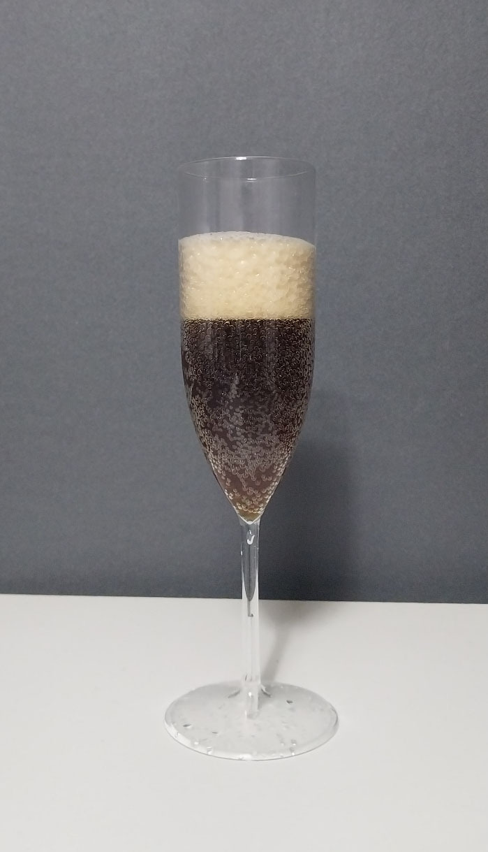 잔에 따른 맥주는 흑맥주의 색깔을 여실 없이 뽐내고 있다. 검은색 술 위로는 부드러우면서도 입체감 있는 거품이 위치하고 있고, 검은색의 바다 안으로 빼곡히 자리 잡은 기포들은 청량감에 대한 기대감을 한 층 높여준다.