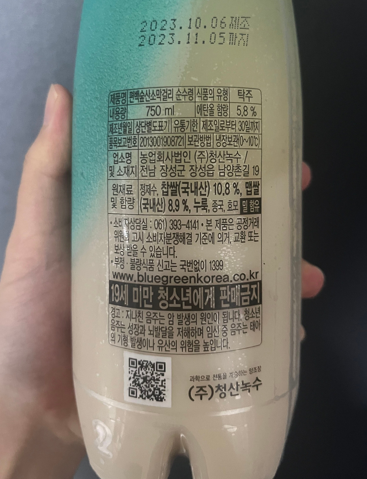 이 막걸리의 용량은 750ML, 도수는 5.8도, 가격은 5000원. 최근 비싼 전통주들이 하도 많이 보이는 탓에 이 정도 값이라면 긍정적으로 고개를 끄덕이게 된다. 물가가 오른 것인지, 내 지갑이 궁한 것인진 모르겠지만 여하튼 상당히 합리적인 가격이다.