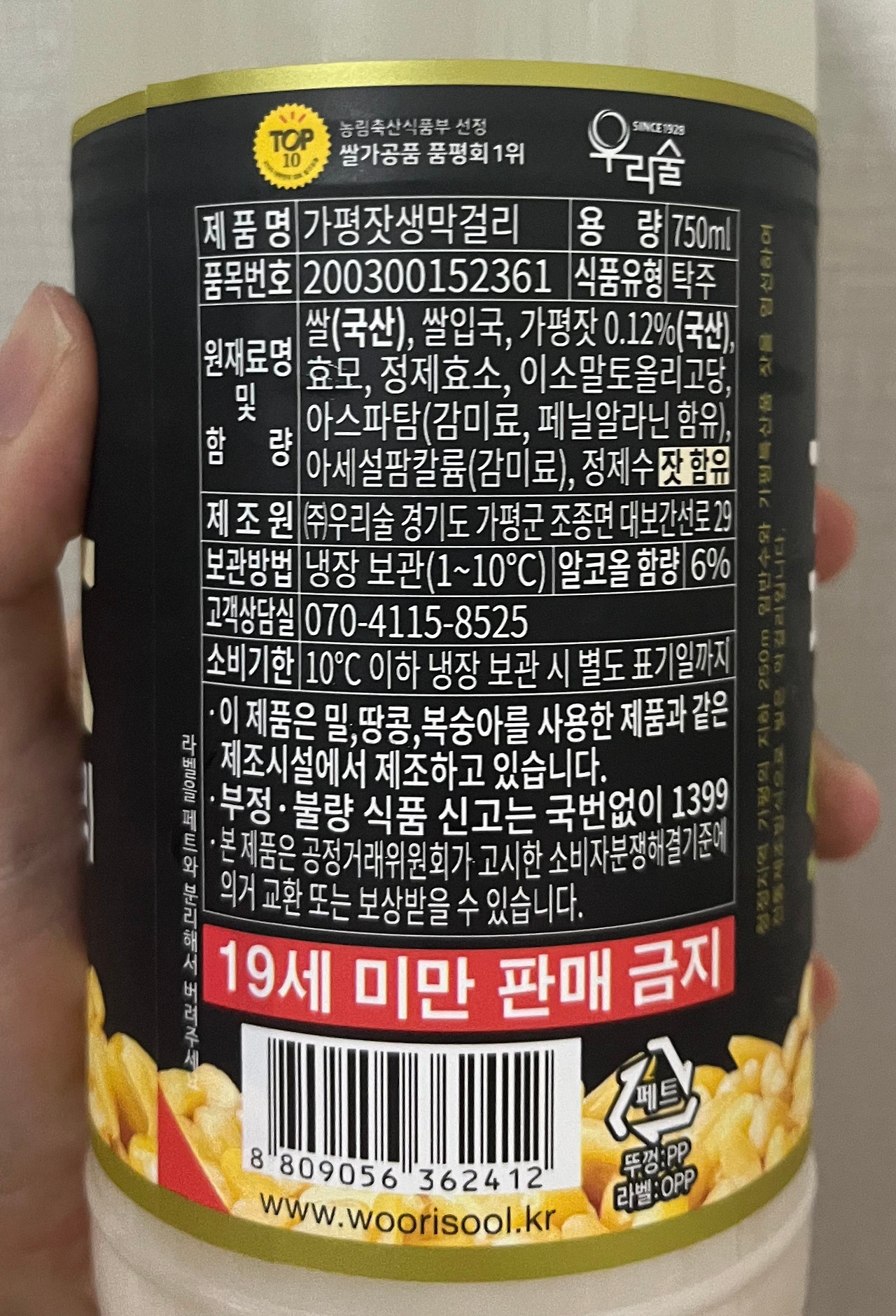 - 가평의 자연의 담긴 '가평 잣 생막걸리'를 음주해 보았다.