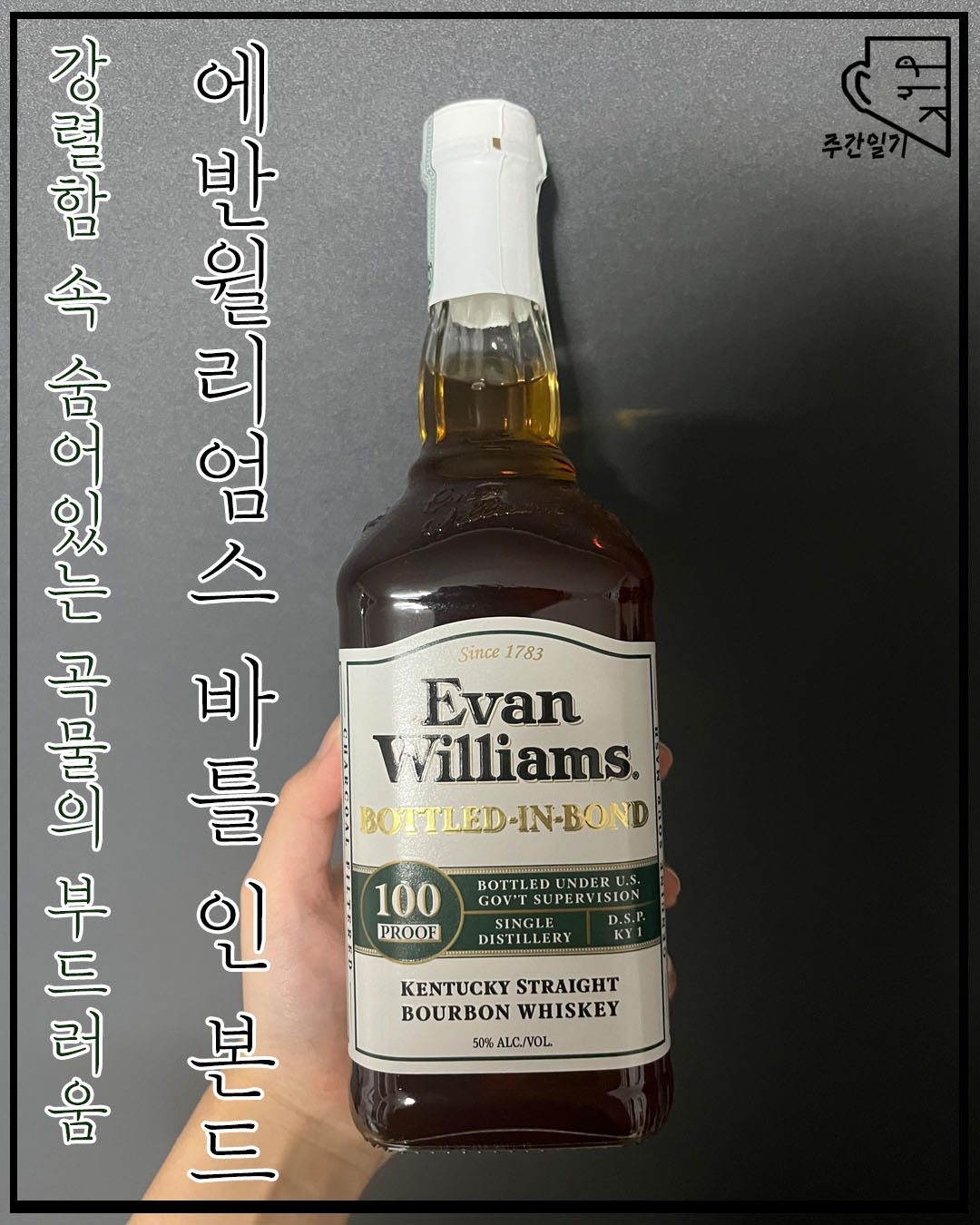 '에반윌리엄스 바틀 인 본드', 위스키를 좋아하는 사람이라면 한 번쯤은 들어봤을 '에반윌리엄스' 시리즈 중 하나이다. 다만 일반적인 위스키와는 달리 '바틀 인 본드'라는 말이 붙어있는데, 이는 1897년에 제정된 법에 따라 미국 재무성이 관리하고 감독하는 표준화된 규격에 맞게 생산되었다는 것을 의미한다. 간단히 말하자면 보통 생산되는 술보다는 좀 더 신경을 썼다는 뜻이다.