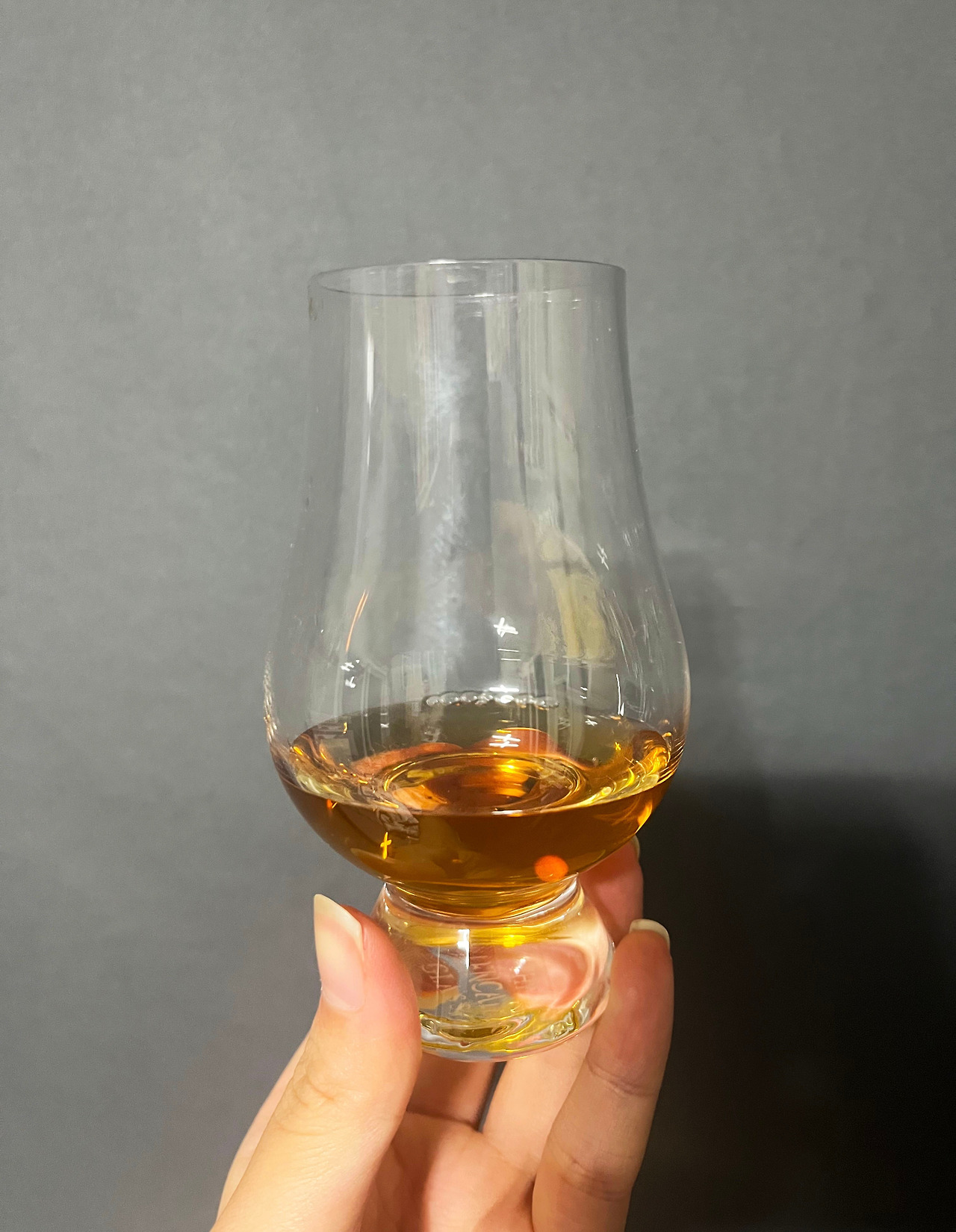 글랜캐런 잔에 따른 술의 모습이다. 참으로 영롱한 빛깔이다. 호박색을 가득 머금은 채 자신을 뽐내는 것이 정말 보석이 따로 없다.