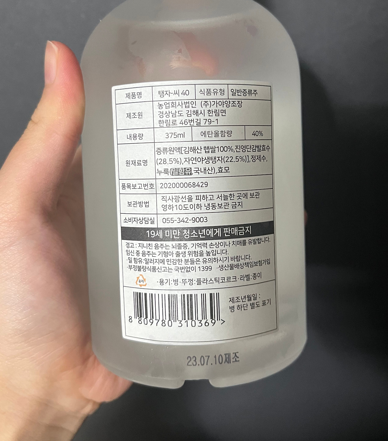 이 탱자를 담은 술의 용량은 375ML, 도수는 40도, 가격은 43,000원. 간단히 계산하자면 750ML에 86,000원이 되는 것이니 어지간한 엔트리급 위스키보다 비싼 값이다. 아무리 최근 전통주의 가격이 올랐다고 하더라도 고개를 끄덕이며 마시기는 어려울 일이다.