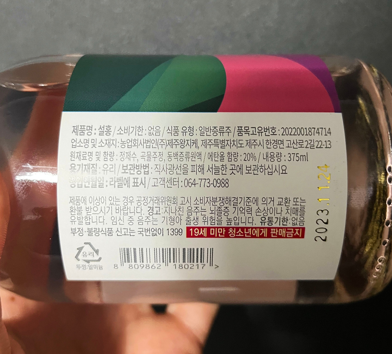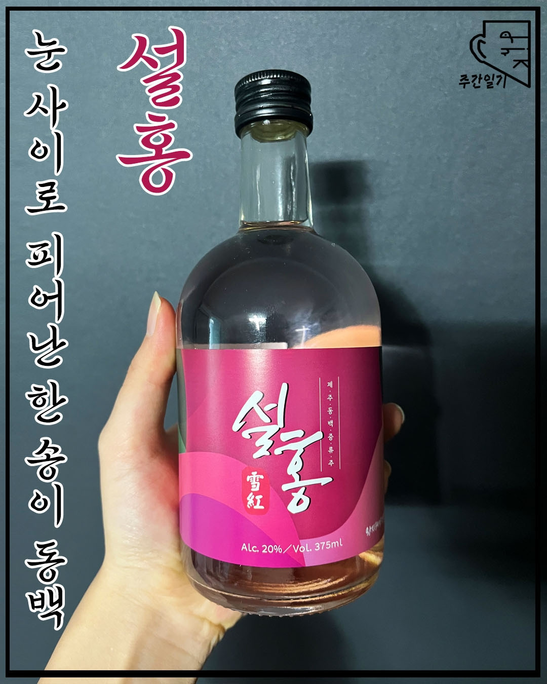 약간 퉁퉁한 덩치를 가지고 있는 친구이다. 전체적인 병 자체는 전통주에서 흔히 볼 수 있는 모습을 하고 있으며, 뚜껑 역시 일반적으로 사용되는 형태와 색을 가지고 있다. 병 안쪽으로는 연한 동백 빛을 뿜어내는 깨끗한 술이 보이고, 병의 전면부에는 별 다른 설명 없이 '설홍'이라는 술의 이름이 한자와 같이 적힌 상태이다.
