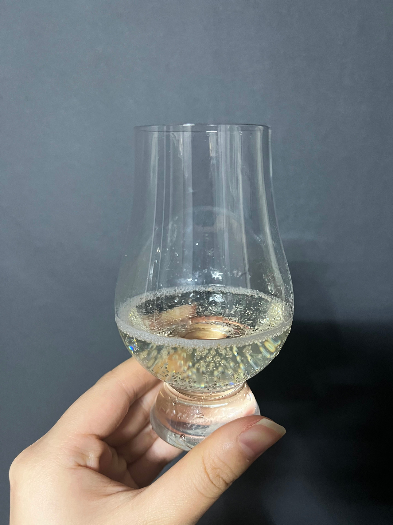 잔에 따른 술은 아름다운 기포와 함께 노오란 빛깔을 뽐낸다. 투명한 듯 달을 머금은 색이 맺혀있는 기포와 합쳐져 매력적인 모습을 연출한다.