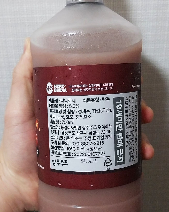 오늘 내가 가져온 막걸리 역시 마찬가지이다. '너디로제', 겉으로 생긴 병의 모습도, 디자인도 모두 독특하여 한눈에 사람의 이목을 끄는 친구라고 말할 수 있다. 막걸리와 전혀 어울리지 않는 신비한 색을 가진 이 친구는 과연 어떠한 향미를 가져다 줄지, 기대와 함께 뚜껑을 열어보도록 하자.