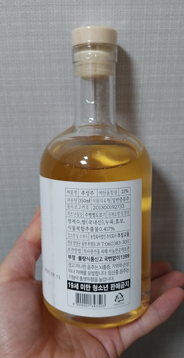 그리고 오늘 내가 가져온 술은 추성고을에서 '양대수 명인'이 빚은 많은 술들 중 하나이다. '추성주', 양조원 가장 대표적인 작품임과 동시에 아주 재미있는 전설이 얽혀 있는 이 약주는 과연 어떠한 맛과 향을 보여줄지, 기대와 함께 뚜껑을 열어보도록 하자.