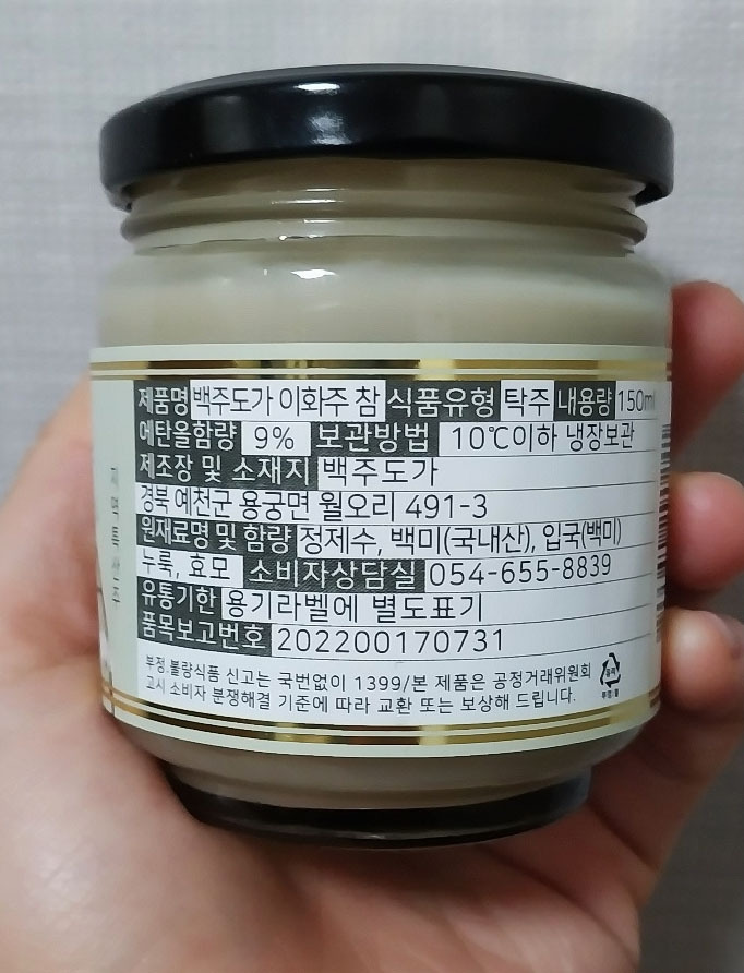 제품의 용량은 150ML, 도수는 9도, 가격은 9,000원. 농축된 용량에 보통의 막걸리 보다 높은 도수, 전통을 이어오는 술 다운 가격이다. 분명히 9,000원이라는 값이 술 한 병을 사기에 저렴하다고 말하긴 어려우나, '이화주'의 경우 역사도 있고, 많은 정성이 들어가기에 충분히 합리적인 값이라고 여겨진다.