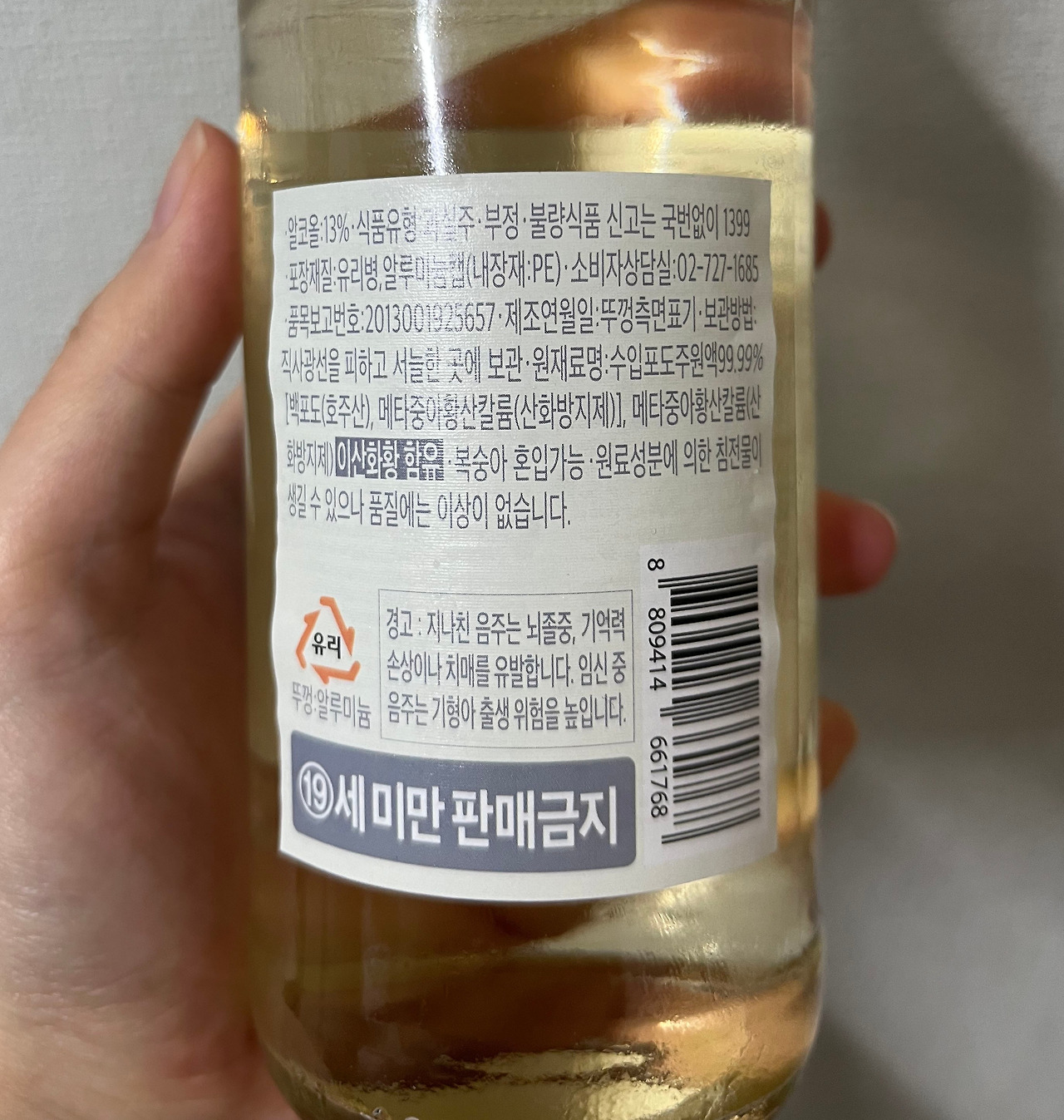 제품의 용량은 375ML, 도수는 13도, 가격은 3000원. 혼술 하기 딱 좋은 양에 일반 소주에 비해서 약간 낮은 도수, 소주와 비교하여도 크게 꿀리지 않는 가격을 지니고 있다. 보통 와인 한 병을 기준으로 하면 이 용량의 두 배인 750ML 생각하면 되는데, 그렇다고 하여도 가격이 6000원에 불과하니 흔히 말하는 가성비에선 압도적인 모습이다.