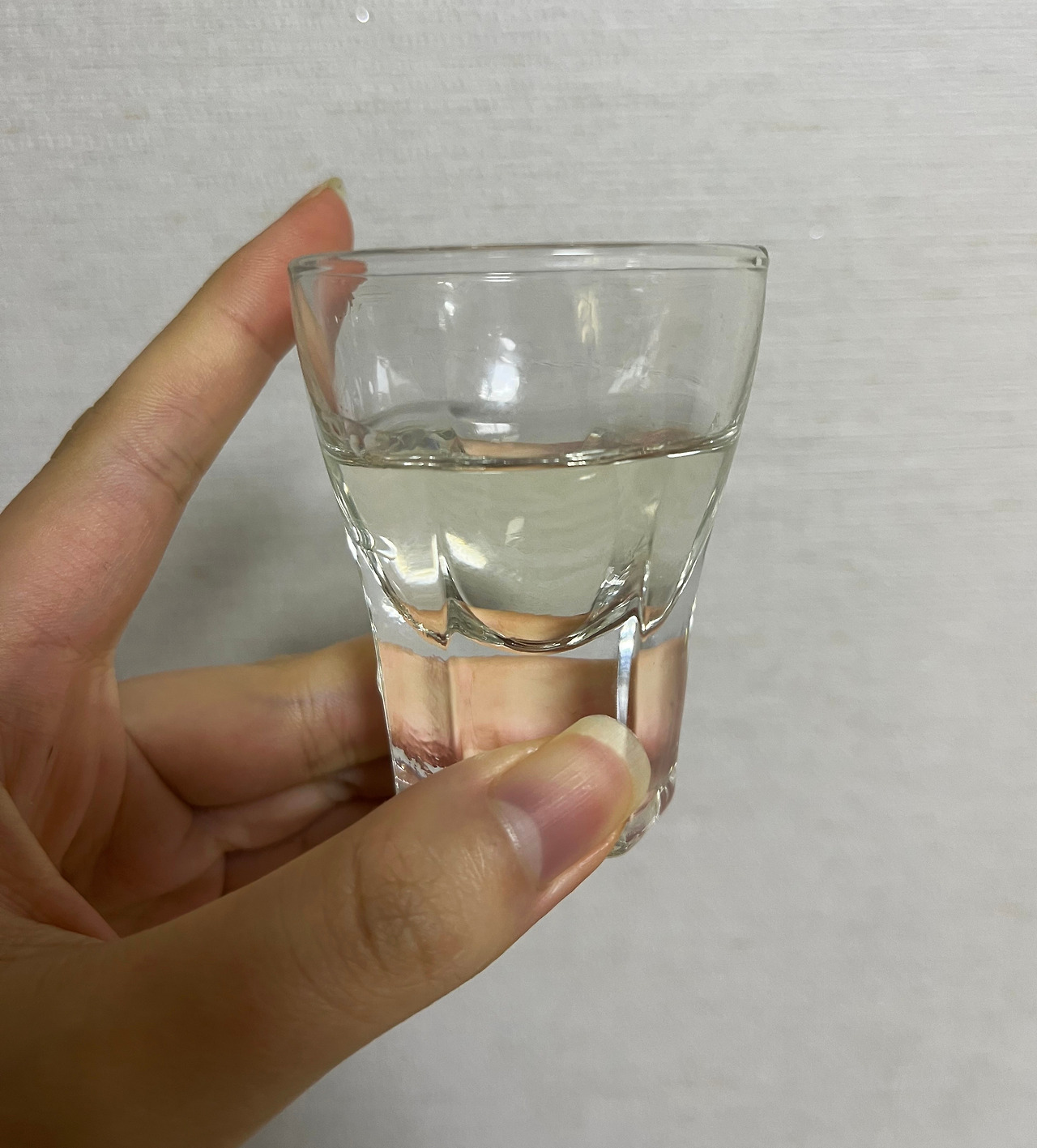 잔에 따른 술은 병 안과는 달리 비교적 투명한 색을 띠고 있다. 안으로 보이던 빛깔과 같이 노르스름한 색깔을 보여주지 않을까 했지만, 깨끗한 호수에 노란 물감을 톡 하고 한 방울 떨어뜨린 정도이다. 거의 일반적인 증류주와 비슷한 형태라고 생각하면 될 듯하다.