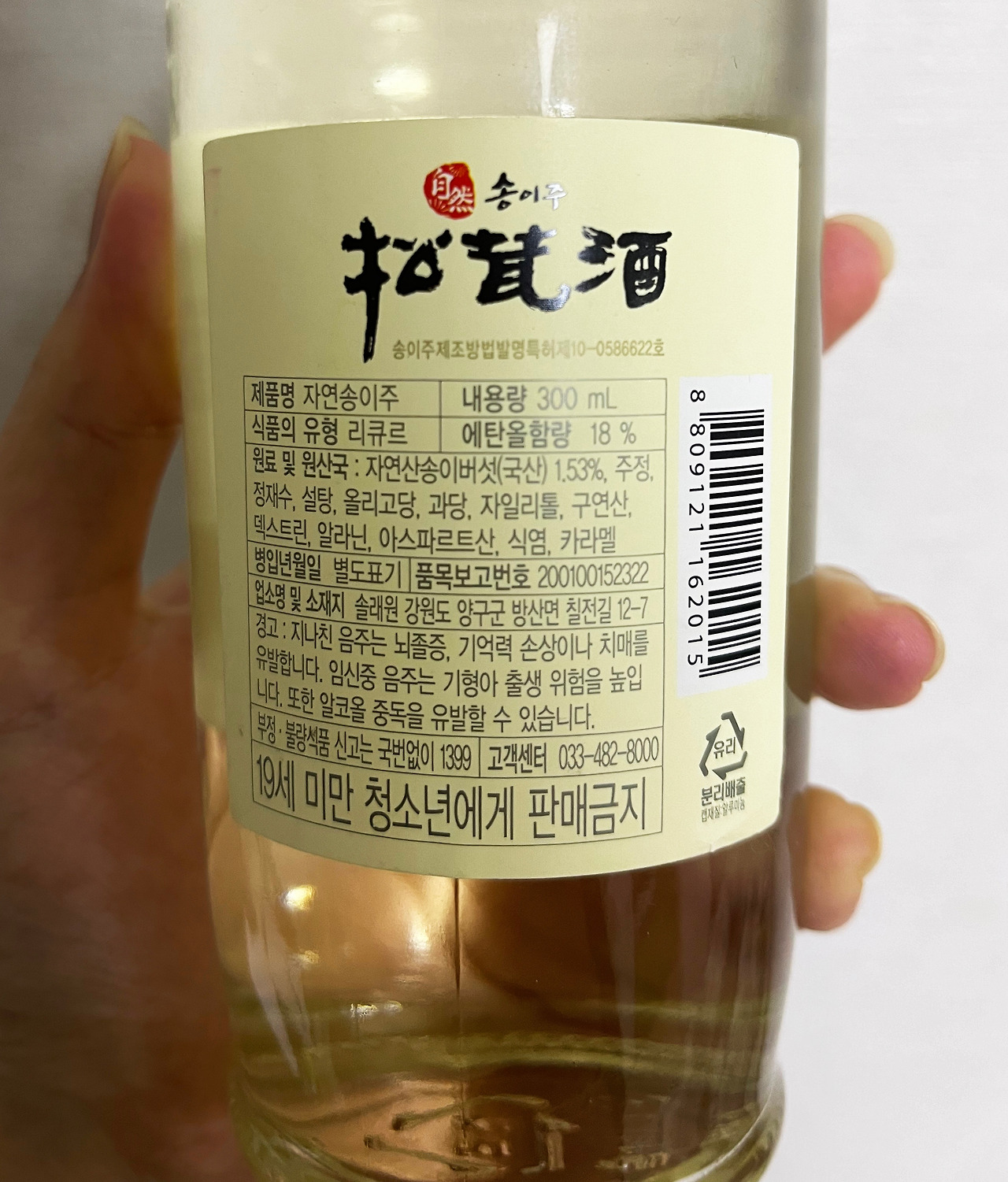 - 자연산 송이의 향긋한 향을 담았다, '자연송이주'를 음주해보았다.